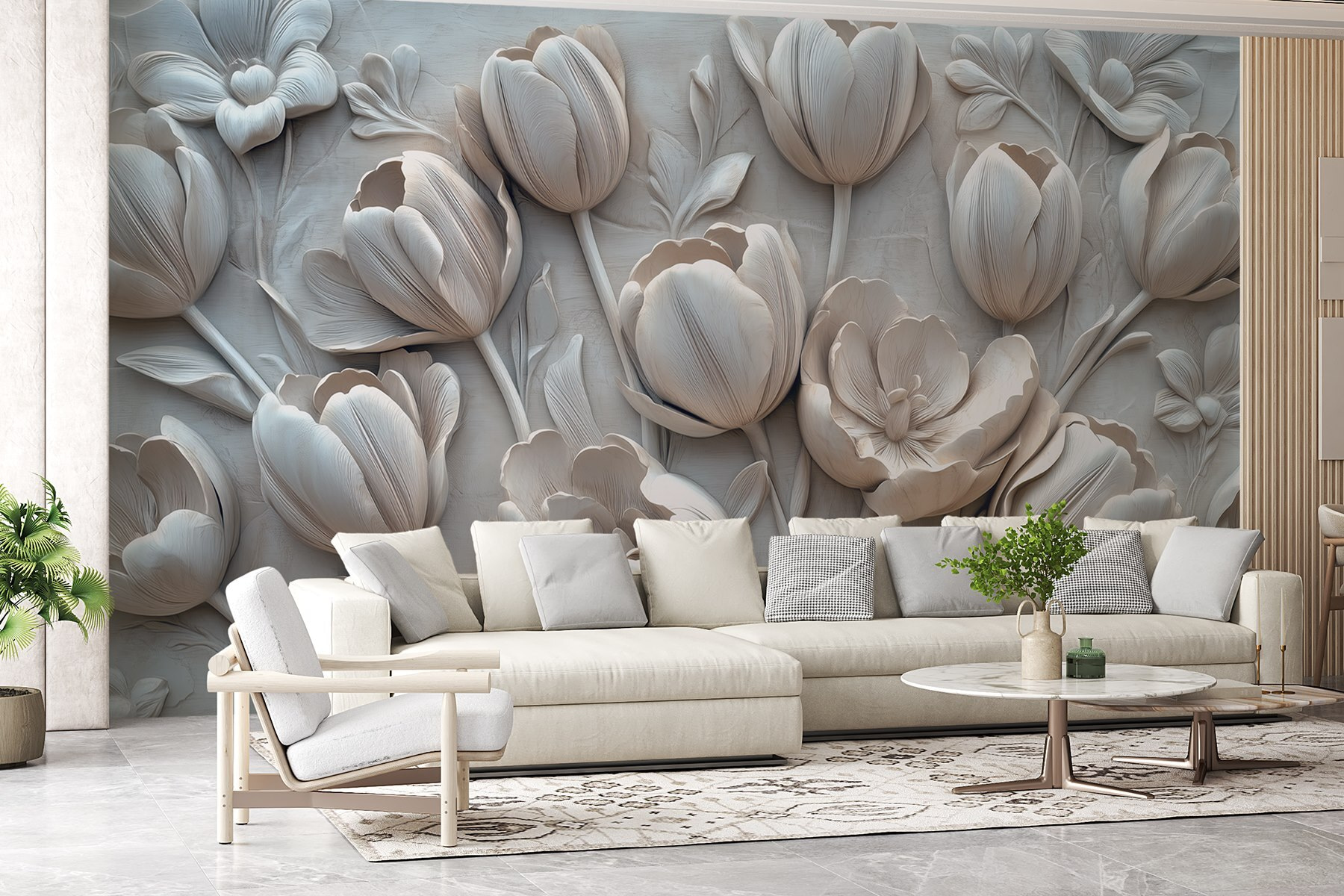 Transform your space into a blooming paradise with this stunning wall mural featuring delicate white flower carvings. It’s like bringing a serene garden indoors—imagine sipping your coffee, surrounded by intricate petals that seem to dance off the wall. Perfect for adding a touch of elegance without the fuss of real plants. The soft tones create a calm vibe, making even the busiest days feel a little more tranquil. Whether it’s for a cozy nook or a bold statement wall, this mural whispers beauty and charm. Everyone deserves a bit of floral delight, right?