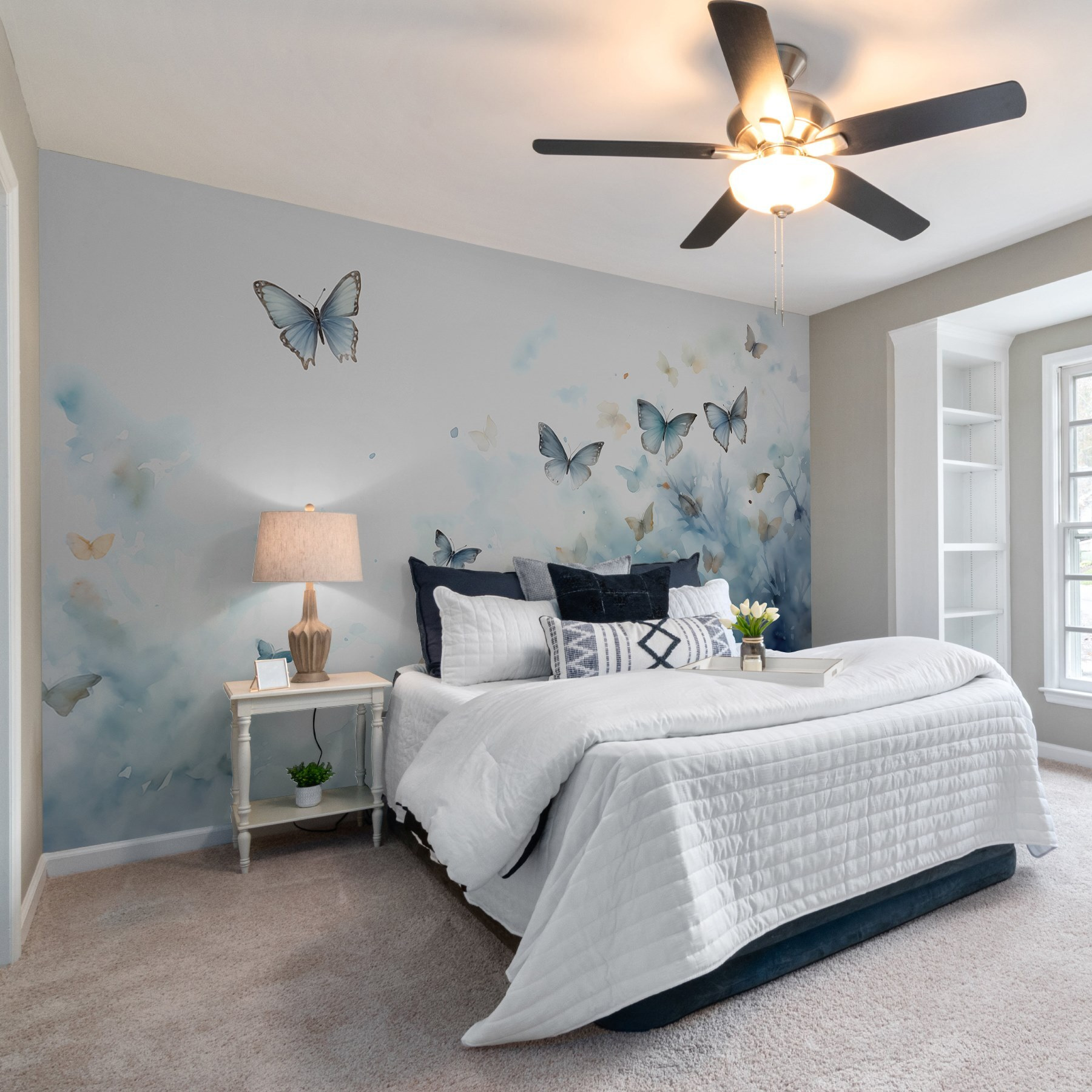 Transform your space with this enchanting wall mural featuring a delightful group of butterflies fluttering through a dreamy sky. Imagine stepping into a room where these delicate creatures seem to dance across your walls—it’s like having a little piece of nature right at home. The soft blues and gentle pastels create a soothing atmosphere, perfect for unwinding after a long day. Picture curling up with a good book or sipping tea as this mural sparks joy and whimsy. It’s a friendly reminder that beauty can be both simple and extraordinary, don’t you think?