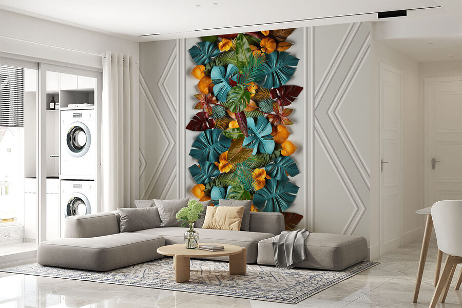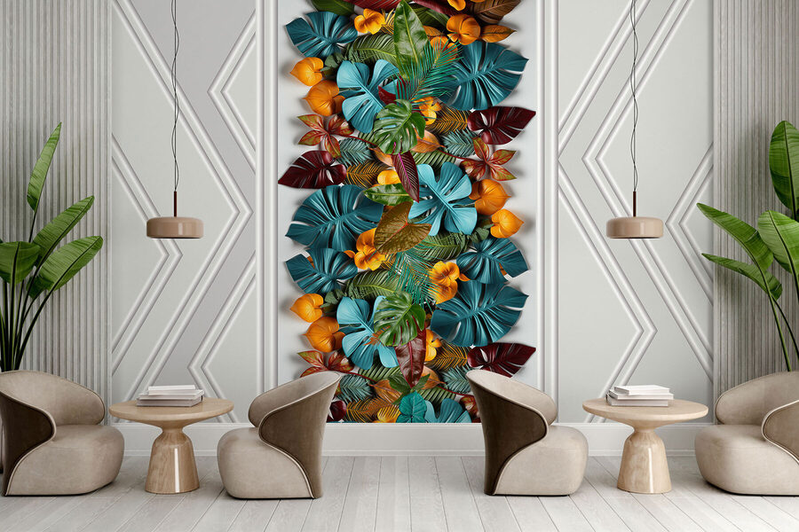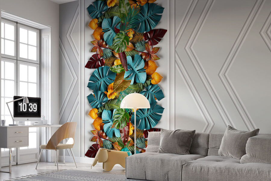 Transform any room with this enchanting wall mural showcasing a white door framed by vibrant leaves. It’s like having a slice of the tropics right in your home—who wouldn’t want that? Imagine stepping into a calming oasis every time you walk in. The lush greens and popping colors can brighten even the dullest days, like a cheerful friend reminding you to take a breather. Plus, it’s a great conversation starter—guests might think you’ve taken a surprise trip to a botanical garden. Just hang it up, kick back, and let the good vibes flow.