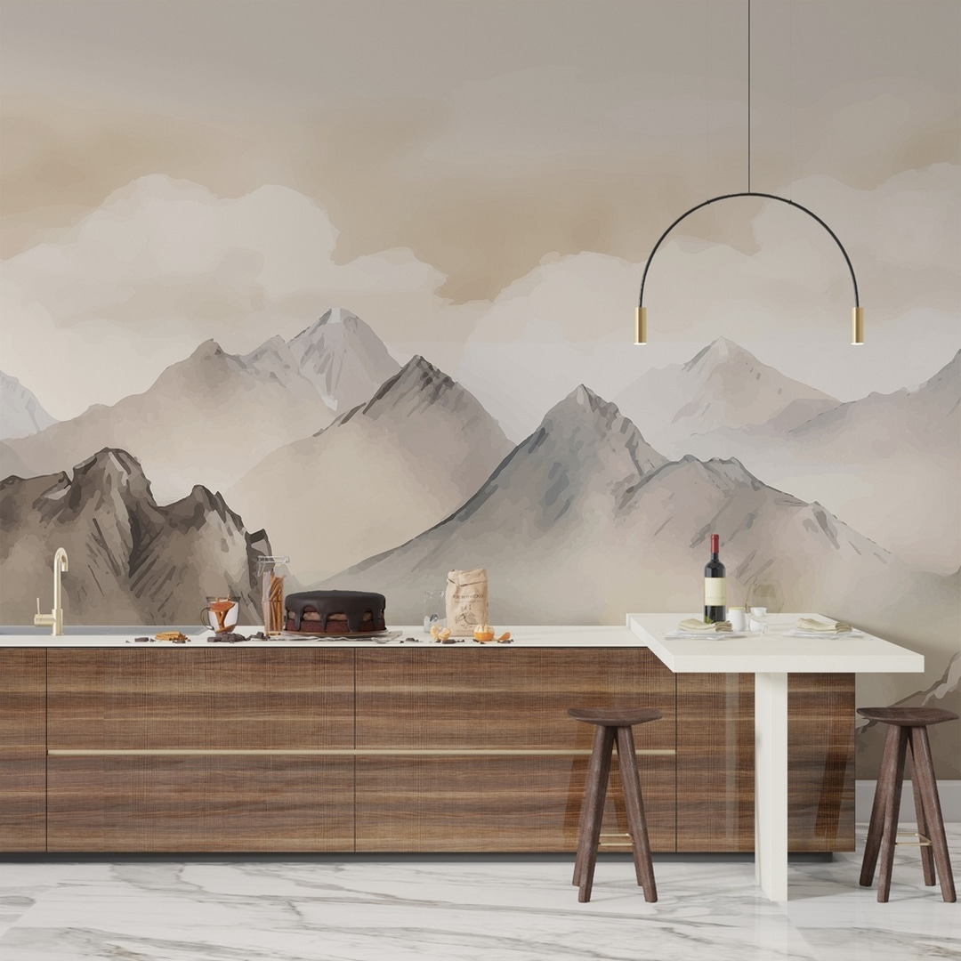 Transform your space into a tranquil escape with this stunning wall mural of mountains and clouds. It’s like having a mini-vacation right in your living room! Imagine waking up and gazing at distant peaks, bathed in soft hues of beige and gray, making every morning feel like a serene mountain retreat. It’s perfect for those days when you want a little adventure without leaving the house—no hiking boots required! Plus, it brings a cozy, earthy vibe that can soothe even the most chaotic of days. Friends will wonder if you magically got whisked away to the Alps. So, whether it’s a quiet coffee break or a lively gathering, this mural’s got you covered—literally!