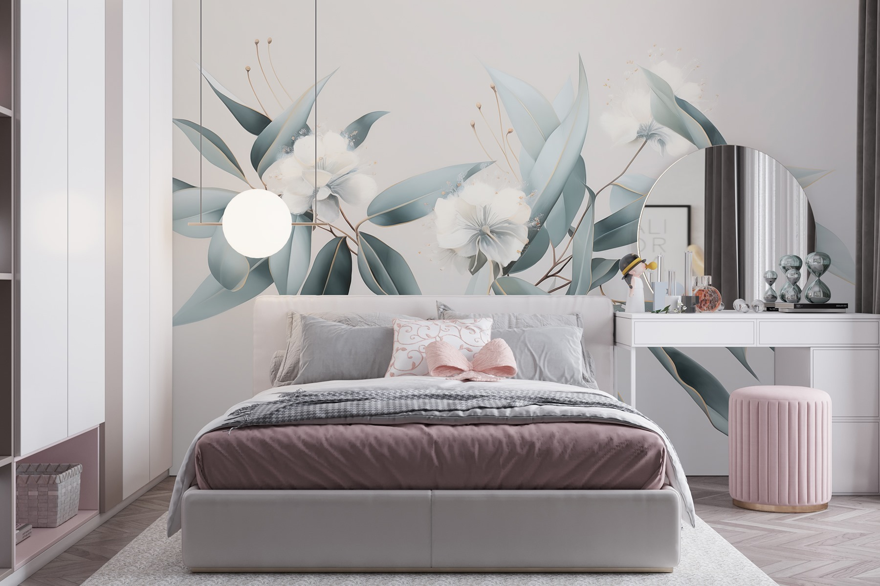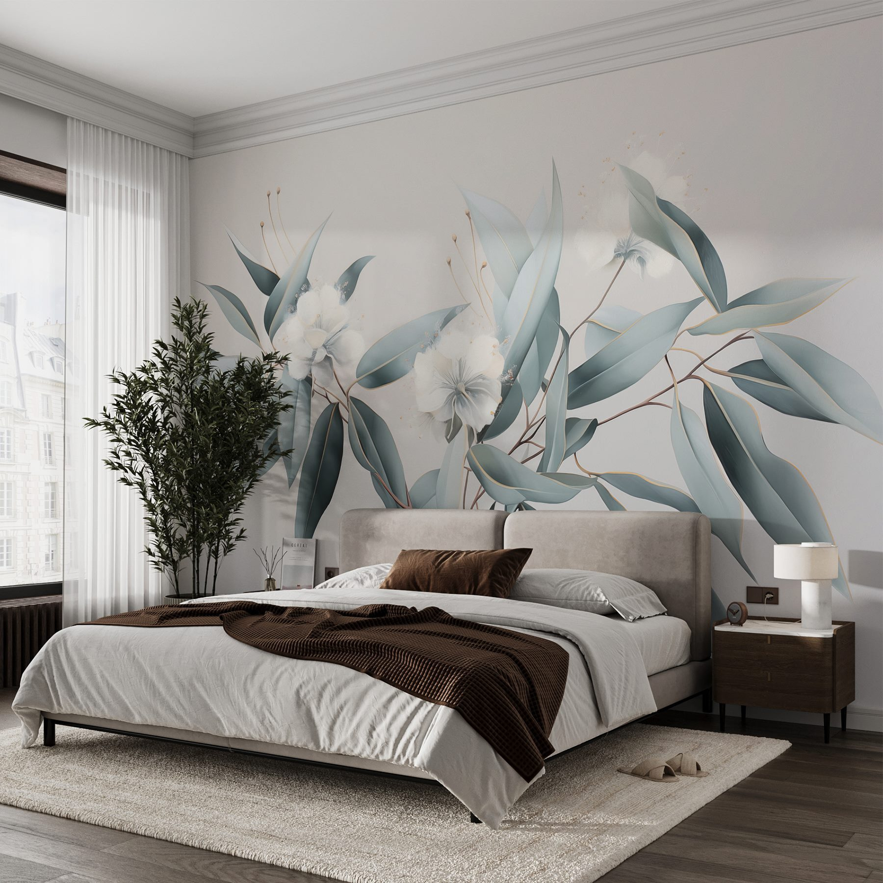 Transform any space into a serene oasis with this elegant floral mural. Picture this: waking up to the sight of soft blooms and gentle leaves, just like a peaceful garden right in your living room. The muted colors create a calm vibe, perfect for those moments when life’s a bit too much. It’s like nature whispered, “Hey, let’s relax!” Whether it’s above your couch or in a cozy reading nook, it adds a touch of sophistication without trying too hard. Friends might even mistake your home for a chic art gallery! So, bring the outdoors in, and let this mural work its magic. Who knew home decor could feel so refreshing?