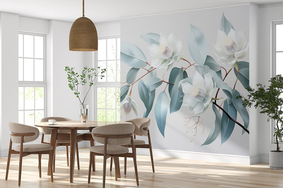 Transform any space with the stunning “Wall Murals White Flowers and Leaves on a Branch.” This mural wraps your walls in an elegant embrace of soft whites and gentle greens, reminiscent of a serene garden. Imagine stepping into your room and feeling as if you’ve been transported to a peaceful oasis, where the daily grind fades away.