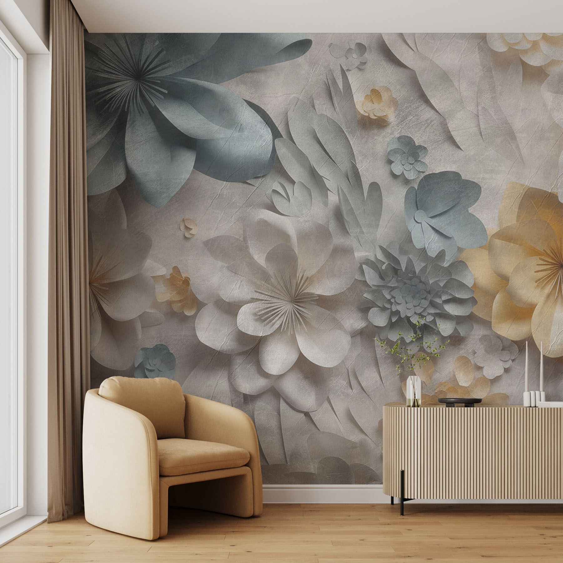 Transform any room into a serene oasis with the “Group of Paper Flowers” mural. This enchanting design features a soft palette of pastels that feels like a gentle spring breeze. Imagine walking into a space where your walls bloom with petals—each flower, crafted with a touch of whimsy, seems to dance in the light. It’s like having an art gallery in your home, minus the snooty vibe. Perfect for a cozy reading nook or that blank wall begging for some love, this mural whispers elegance and creativity. It’s a little reminder that nature’s beauty can thrive indoors, making every day feel just a bit brighter!