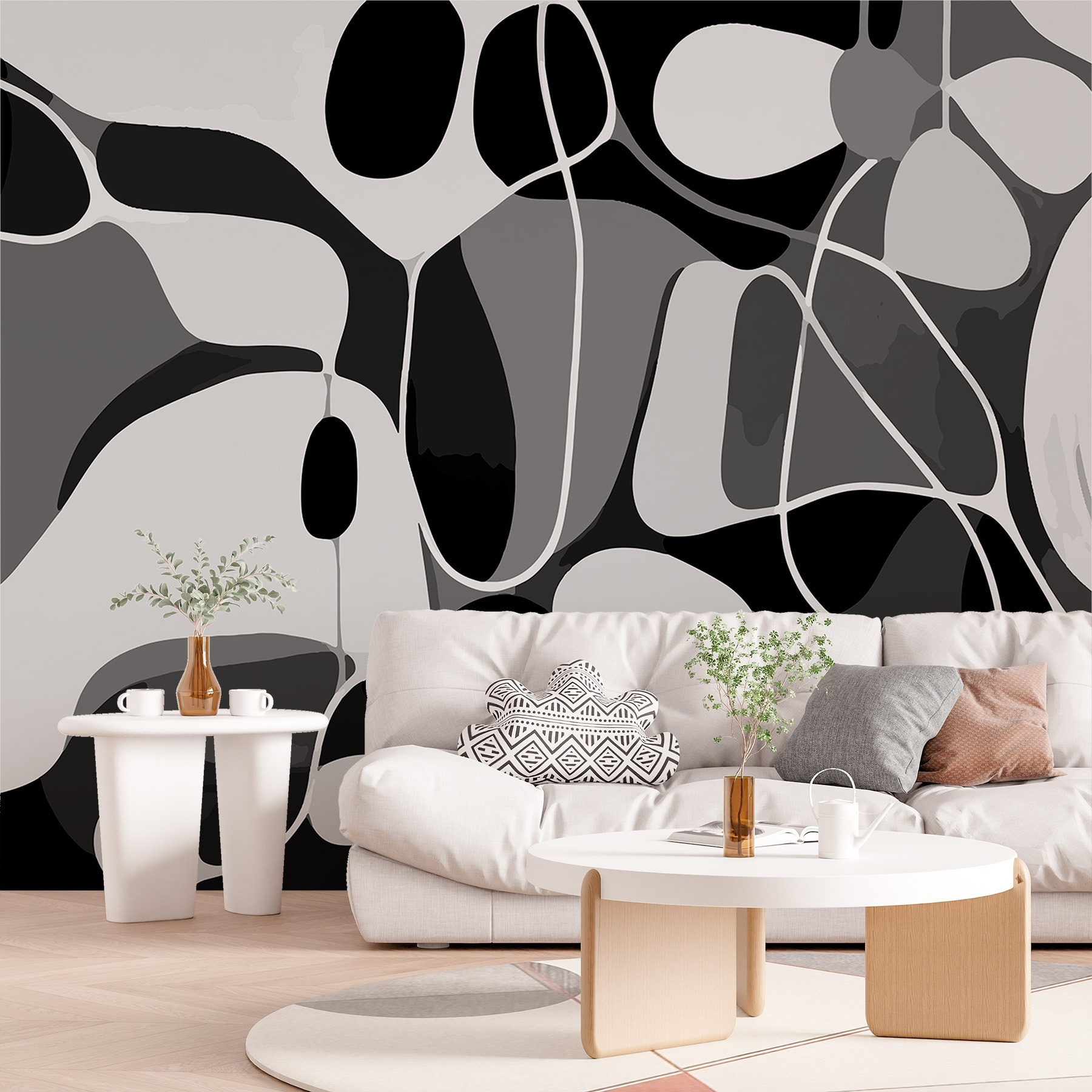 Transform any room with this stunning black and white wall mural, perfect for those who love a mix of modern flair and timeless elegance. Each swoosh and curve invites the eye to explore its unique pattern, almost like a playful dance of shapes. Imagine cozying up with a cup of coffee, just admiring how the light interacts with the deep hues—it’s a little bit like art happening right in your home. It’s surprising how such a simple color scheme can add so much depth and personality. Go on, let your walls do the talking!