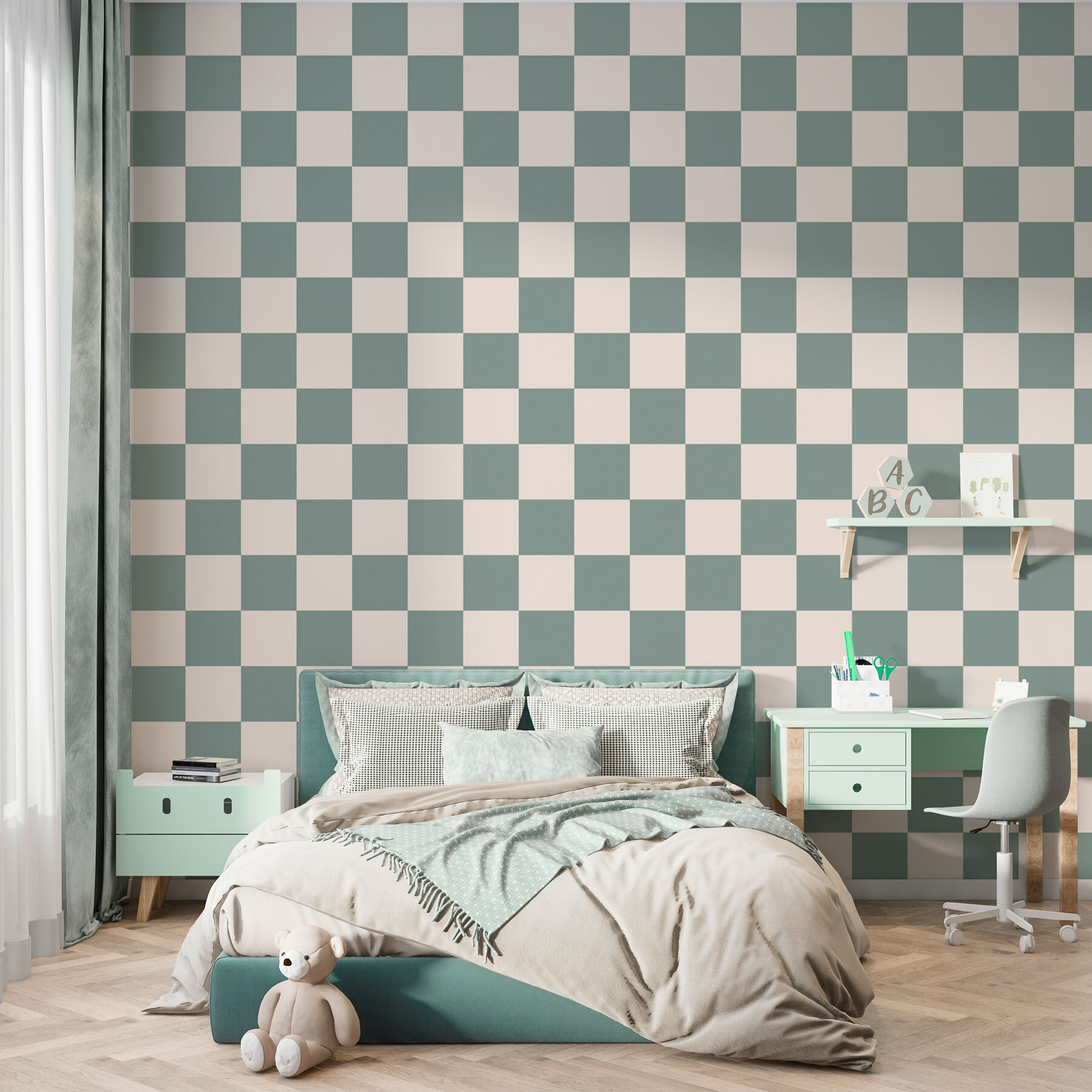 Transform any room into a playful visual feast with this wall mural, featuring a fun pattern of squares that could easily pass for an artist’s quirky tablecloth. Imagine stepping into a space that feels both cozy and contemporary—like your favorite café but in your own home. The soft tones dance together, giving an inviting vibe. It’s perfect for sparking creativity or just getting lost in daydreams. Picture it behind a comfy sofa or in a vibrant office—whether hosting friends or simply catching a breather, this mural will be a conversation starter. It’s not just decor; it’s a mood!