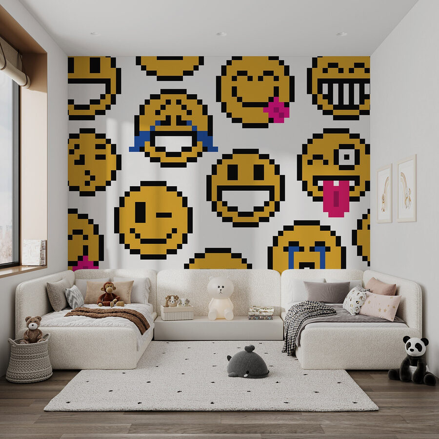 Imagine hosting a game night, and every time someone rolls a funny anecdote, those smiley faces just seem to agree. It’s like they’re part of the conversation! Perfect for a kid’s room, a playful office, or anywhere needing a dash of whimsy, this mural sparks joy. So, why not let a little emoji magic brighten things up? Who wouldn’t smile back?