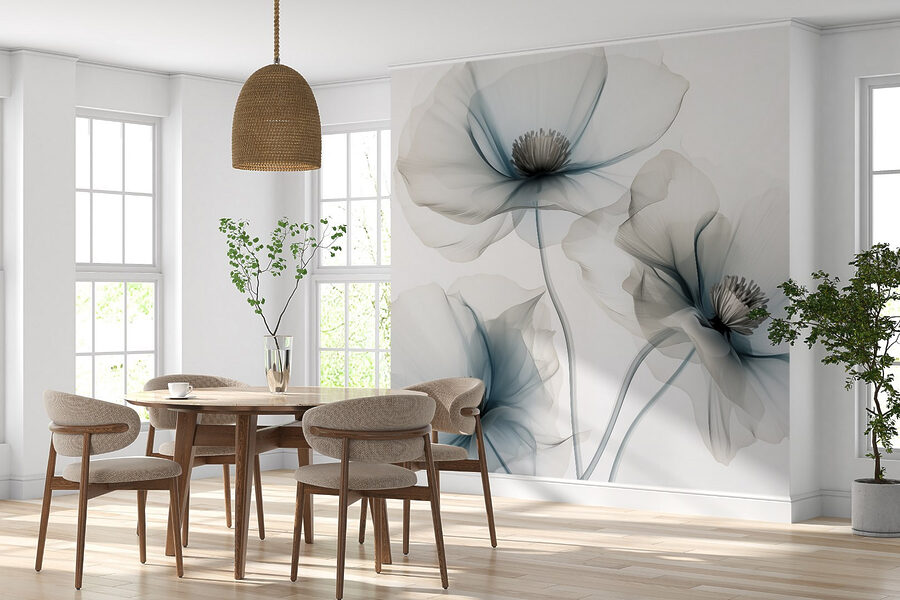 Transform any room with this stunning wall mural featuring a group of delicate flowers with light blue petals. Imagine waking up to this calming scene, as if nature itself has decided to blossom right in your living space. With its soft colors and elegant design, it’s like a gentle breath of fresh air, perfect for those dreary days when you need a little pick-me-up.