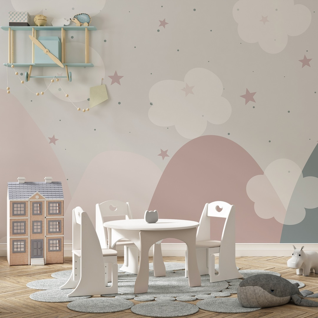 Transform your space into a dreamy getaway with this charming wall mural, “Landscape with Clouds and Stars.” Picture it—a serene scene where soft mountains meet fluffy clouds, all sprinkled with whimsical stars. It’s like a cozy hug for your walls! Imagine walking past it daily and feeling a wave of calm wash over you, like a gentle breeze on a sunny afternoon. Perfect for a nursery or a cozy reading nook, this mural invites daydreams and starlit adventures. Plus, it’s a fantastic conversation starter—who doesn’t love a bit of celestial charm? Let your walls tell a story!