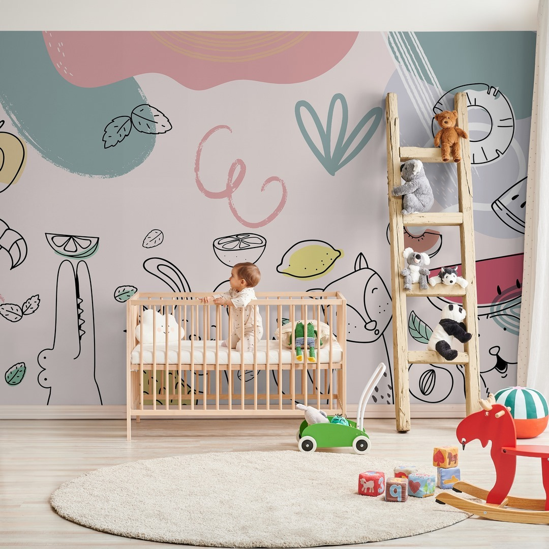 Brighten up any space with this whimsical wall mural featuring charming cartoon animals joyfully clutching their favorite fruits. Imagine a playful bunny hugging a pineapple while a cheeky fox beams beside a vibrant watermelon slice. It’s a delightful scene that brings a splash of color and cheer to your walls—perfect for kitchens, playrooms, or just about anywhere that could use a dash of fun. You might even catch yourself smiling every time you walk by. Who wouldn’t want to feel like they’re surrounded by such fruit-loving friends? It’s like a cheerful little party just waiting to happen!