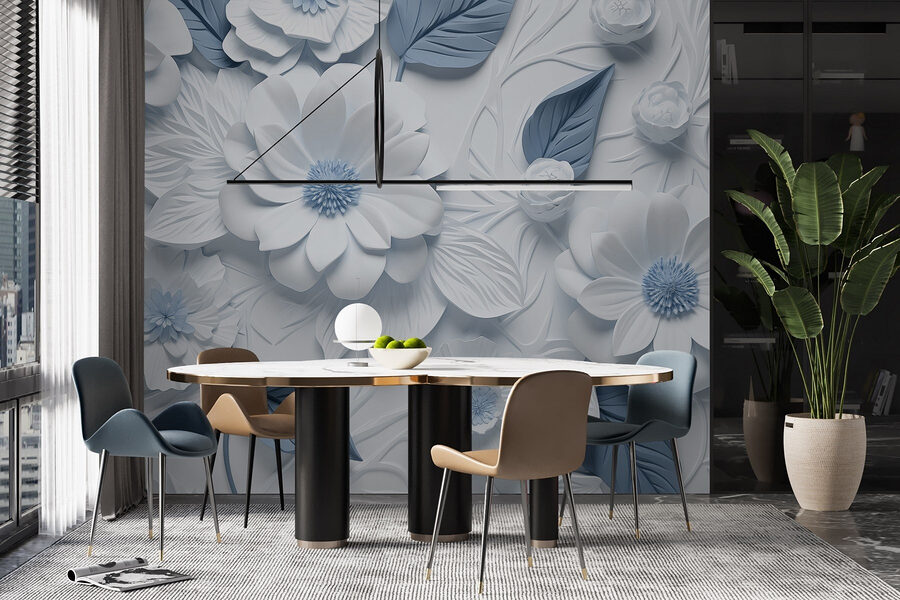 Transform any room into a serene garden with these wall murals featuring white and blue flowers nestled among delicate leaves. Just imagine walking into your space and feeling like you’ve stepped into a fresh spring day, where nature meets comfort. The soft color palette adds a gentle touch, perfect for making a cozy nook or brightening up a dull corner. It’s the kind of decor that whispers elegance without shouting for attention. Friends will be asking if you’ve hired a designer, and you can just smile knowingly. Nature lovers, this one’s for you!