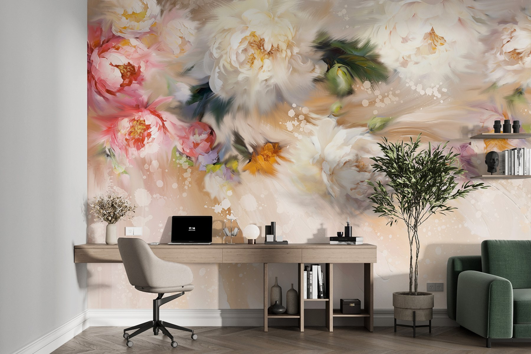 Transform your space with this lovely wall mural of flowers dancing on a soft white backdrop. It’s like bringing a serene garden inside—without the pesky pollen! Imagine waking up every morning to this burst of color; it’s sure to brighten even the gloomiest of days. Each bloom seems to whisper stories of springtime, inviting joy and warmth into the room. Perfect for any area seeking that cozy, inviting touch, this mural feels like a gentle hug for your walls. Plus, it’s a fantastic conversation starter—you know, bringing a bit of nature indoors always sparks delight. Who wouldn’t smile at that?