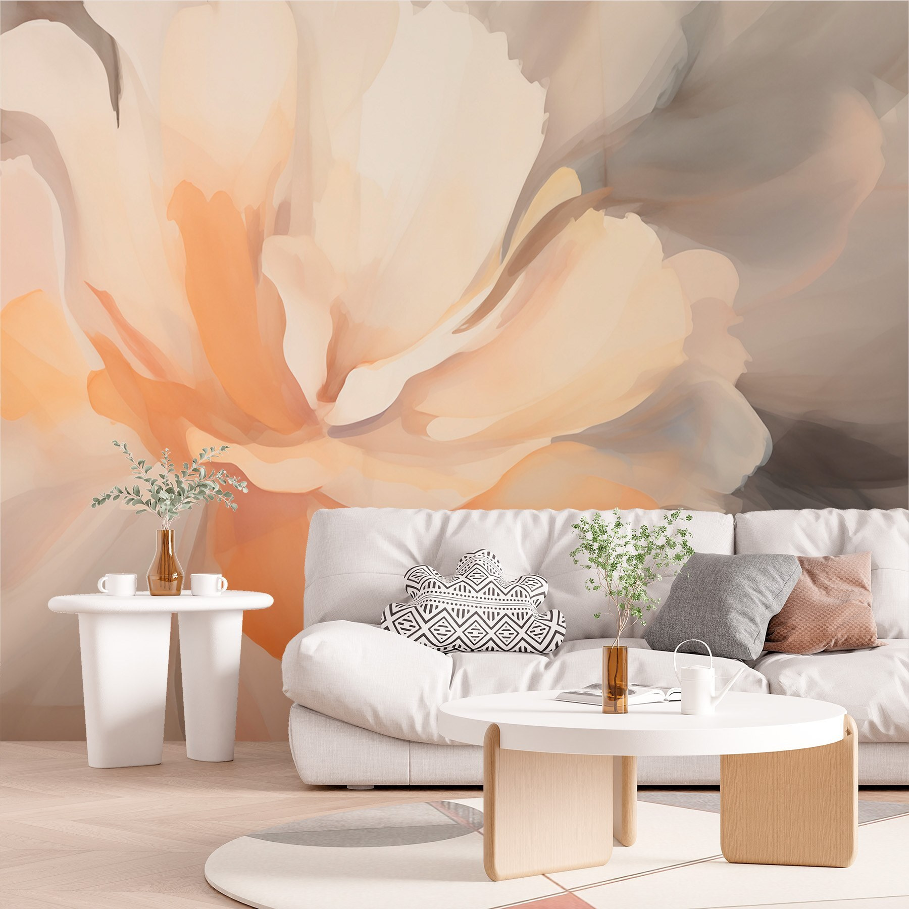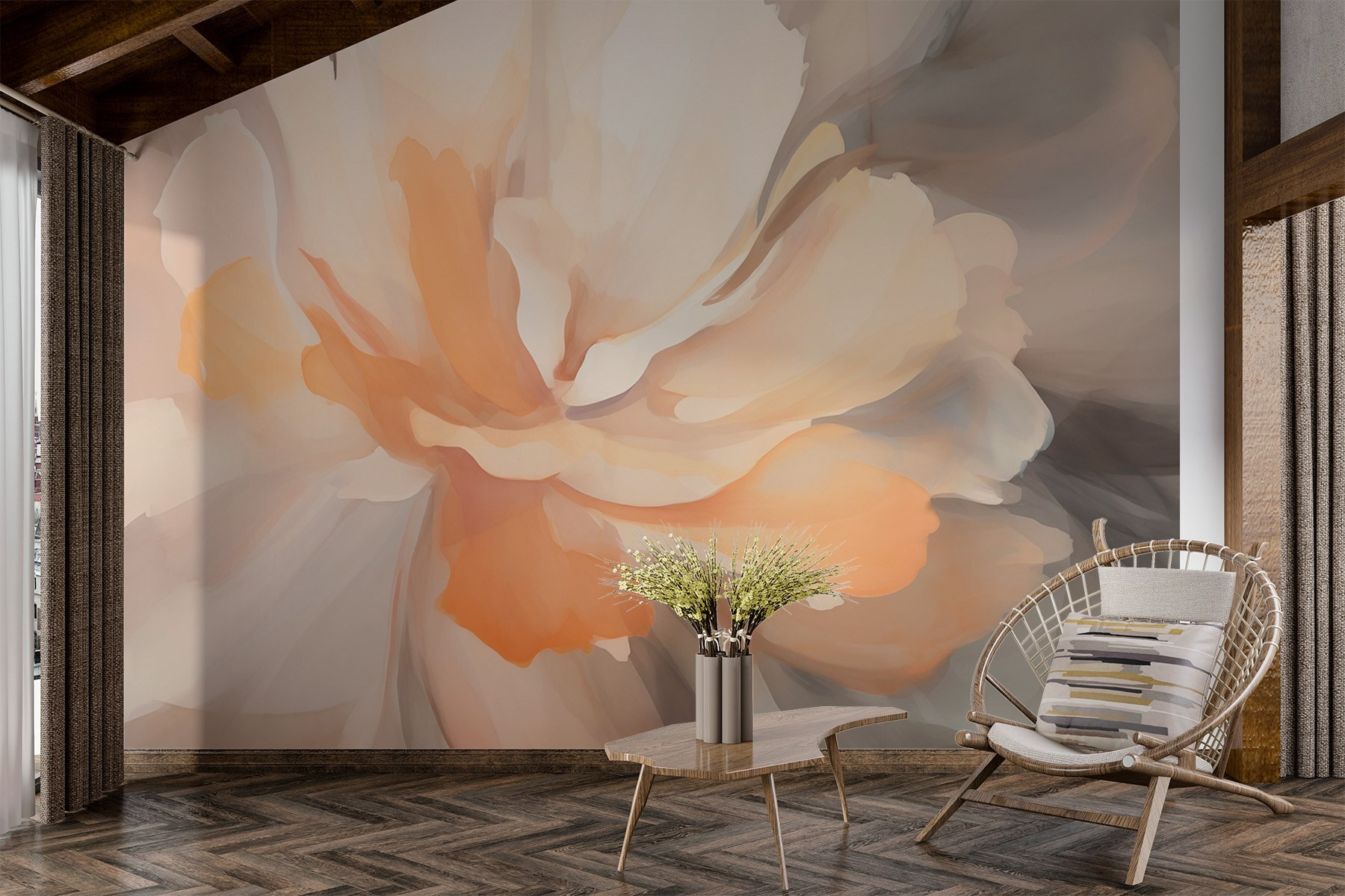 Transform any space with the enchanting “Delicate hues in soft floral beauty” mural. Imagine walking into a room and feeling instantly wrapped in a cloud of gentle pastels and elegant blooms. It’s like having a serene garden right on your wall, without the pesky pollen!