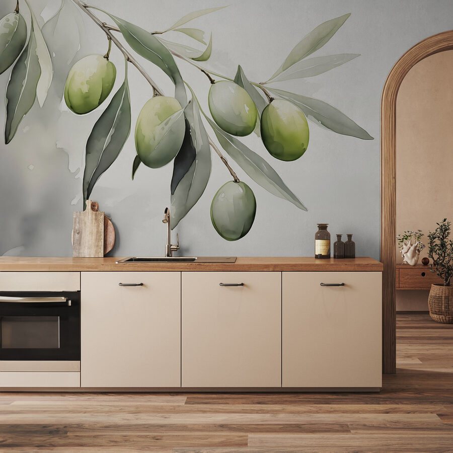 Imagine stepping into a space where a gentle breeze of nature flows right from the walls. This mural, featuring lush green fruits and delicate leaves, whispers tranquility and freshness. It’s like bringing a slice of the outdoors inside, perfect for those days when the sun just isn’t shining. The muted colors create a calming backdrop—ideal for a cozy reading nook or an inviting dining area. Picture sipping tea here, feeling inspired and relaxed. It’s more than just decor; it’s a daily reminder of the beauty of nature, making any space feel alive.