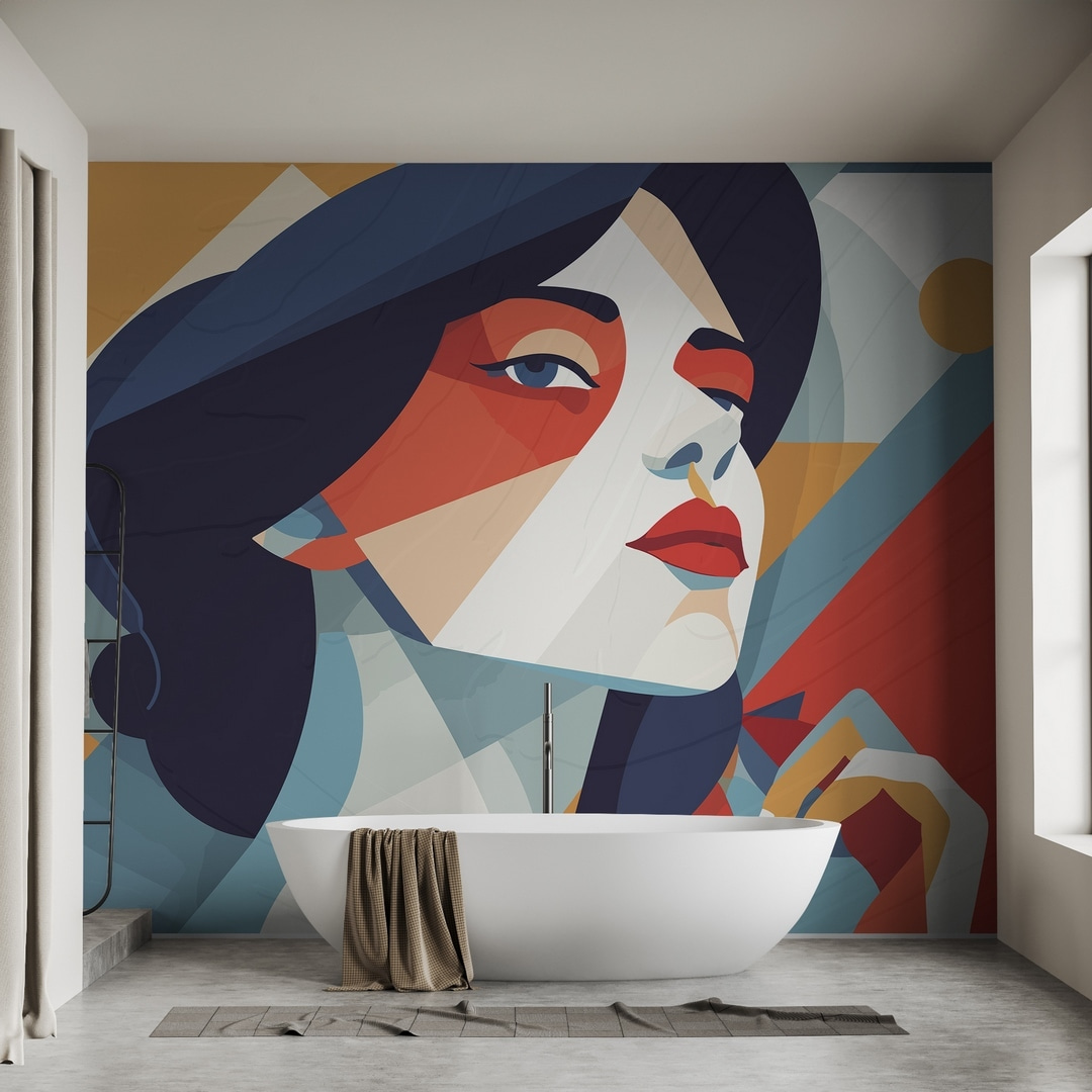 Transform any wall into a conversation starter with this striking mural of a woman flaunting blue hair and bold red-and-white makeup. It’s like having a splash of art that radiates personality and flair. Picture it in a cozy reading nook or as a bold statement in a lively living room—imagine guests pausing mid-sentence, completely captivated.