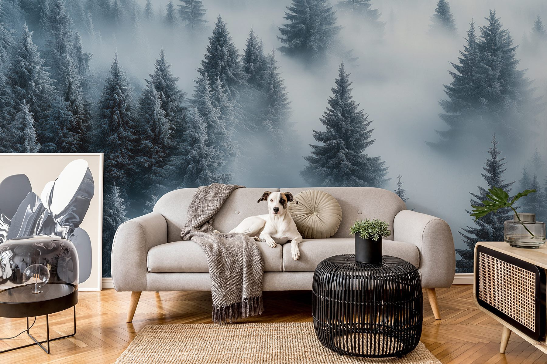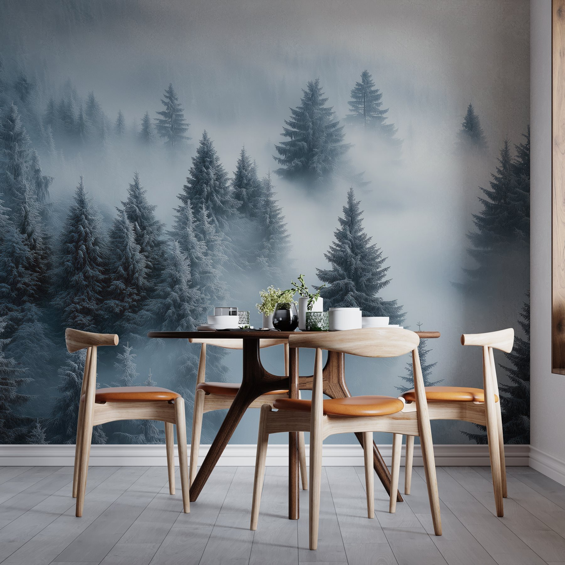 Transform your space with this enchanting wall mural featuring a tranquil group of trees blanketed in soft, white snow. Imagine stepping into a serene winter wonderland right from your living room. The cool, calming colors evoke a sense of peace, perfect for cozy nights in or those moments when you just want to escape the chaos of life. This mural’s gentle fog wraps around the trees, offering an inviting and mysterious vibe. It’s like a snowy forest that whispers, “Take a deep breath, relax, and enjoy the beauty of nature.” Perfect for anyone looking to add a touch of fresh air to their home.