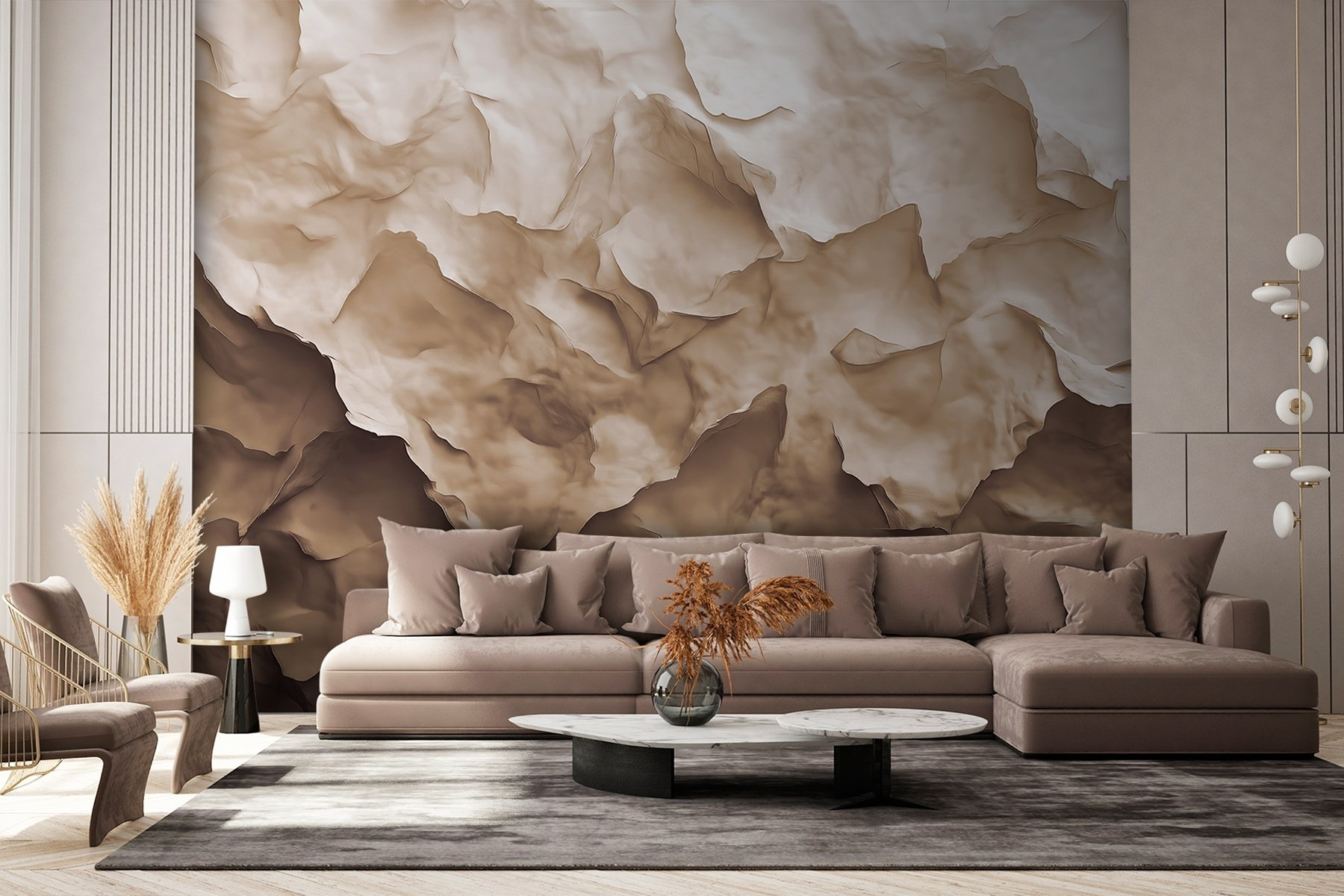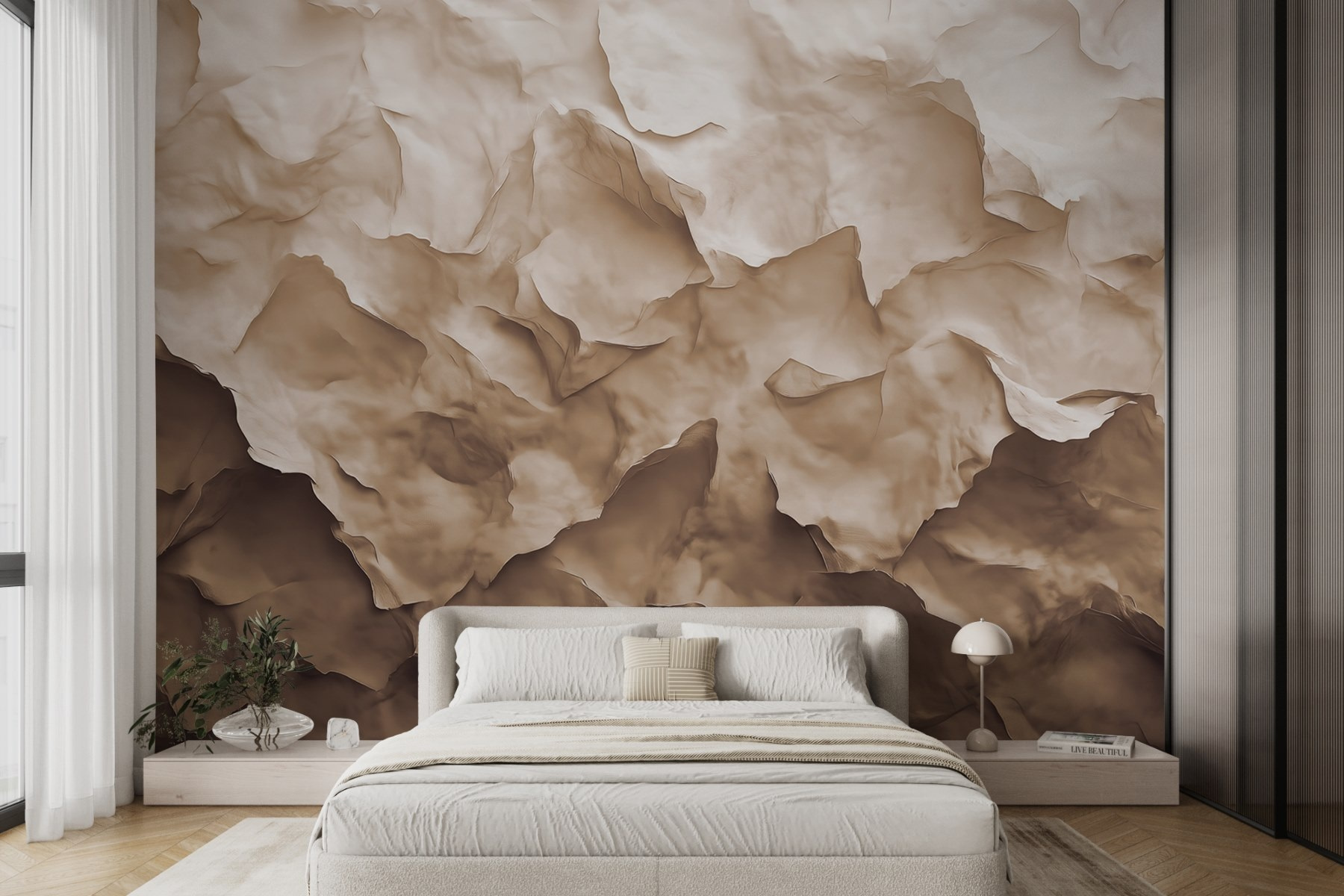 Transform your space with this stunning mural, bursting with layers of organic shapes that dance across the wall like a living piece of art. Imagine stepping into a room where the walls seem to breathe, gently wrapping you in their earthy tones. Whether it’s your cozy reading nook or a vibrant dining area, this mural invites a sense of calm and creativity. It’s perfect for daydreaming or sharing laughs with friends over coffee. Just picture the conversations that could spark in front of such a captivating backdrop—talk about adding a dash of charm and inspiration to everyday life!