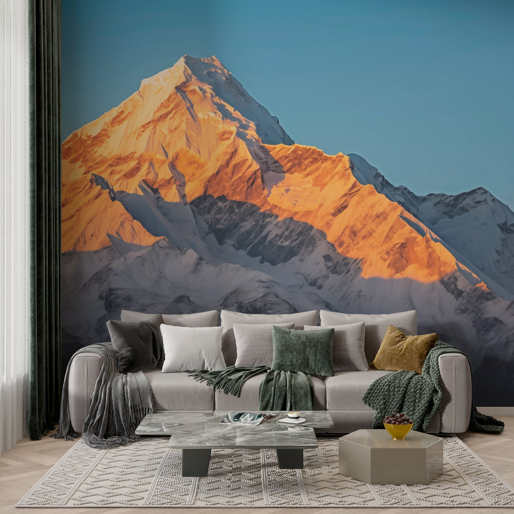 Imagine stepping into a cozy room where the walls whisper tales of grand adventures. This wall mural, featuring a majestic snow-capped mountain, invites you to escape the ordinary. It’s like bringing a slice of nature indoors—no hiking boots required. The soft blues and whites of the mountain contrast beautifully, creating a calming backdrop that makes a space feel both expansive and serene.