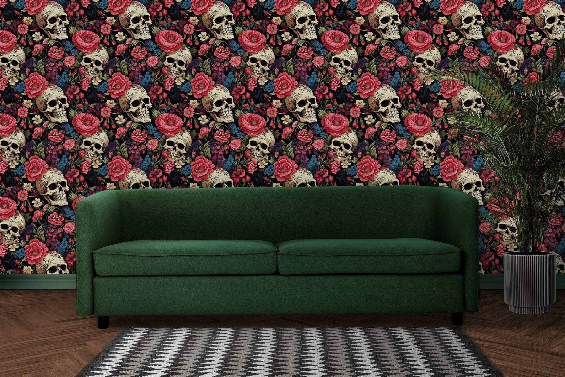 Brighten up your space with the “Wall Murals Pattern of Skulls and Flowers.” It’s the perfect blend of edgy and elegant—like a chic night out with a hint of mischief. Imagine walking into a room where vibrant blooms flirt with charming skulls, creating a conversation starter right on your wall.