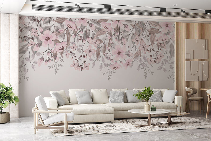 Transform your space into a cozy garden with this enchanting mural featuring delicate pink flowers and whispering leaves. Imagine walking into a room that feels like spring every day—yes, please! The soft hues and intricate details create a calm atmosphere, perfect for sipping tea while scrolling through inspo on Pinterest. Not to mention, it can make those gloomy days feel a tad brighter. Pair it with some green plants, and you might just fool yourself into thinking you’re lounging in a botanical oasis. Who knew a bit of artwork could spark so much joy? It’s not just a mural; it’s a daily hug for your walls.
