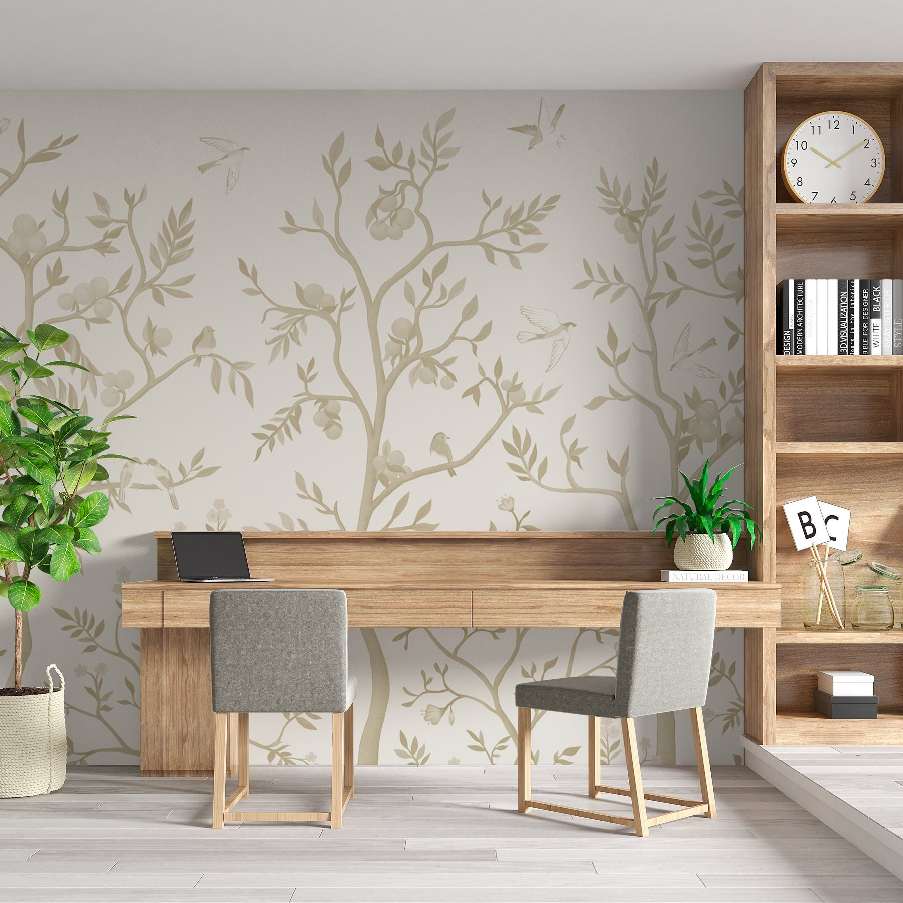 Transform your space into a serene oasis with this enchanting wall mural featuring birds and trees. It’s like inviting nature right into your living room—minus the bugs, thankfully. The soft colors and delicate designs evoke a sense of calm, making it perfect for a cozy reading nook or a dreamy bedroom. Imagine sipping tea while watching the little birds perched among the branches, feeling as if you’ve stepped into a whimsical storybook. This mural not only adds character but whispers serenity, turning even the busiest days into a peaceful escape.