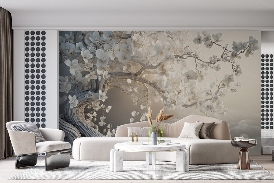 Imagine walking into a room and being greeted by a majestic tree, its elegant white flowers reaching out like gentle whispers. This “White Tree with White Flowers” mural isn’t just a decor piece; it’s like having nature’s calm right at your fingertips. Picture cozy evenings spent under this serene canopy, where every glance feels like a mini escape to a peaceful garden. It’s perfect for empty walls, transforming them into lush landscapes that invite relaxation and creativity. Plus, it might even inspire a bit of daydreaming—who wouldn’t want that? The soft colors blend seamlessly, making any space feel lighter and more inviting. Whether it’s a chic apartment or that quirky coffee shop down the street, this mural brings a touch of whimsy and a breath of fresh air. A beautiful touch that says, “Stay a while, relax, and let your thoughts drift.”