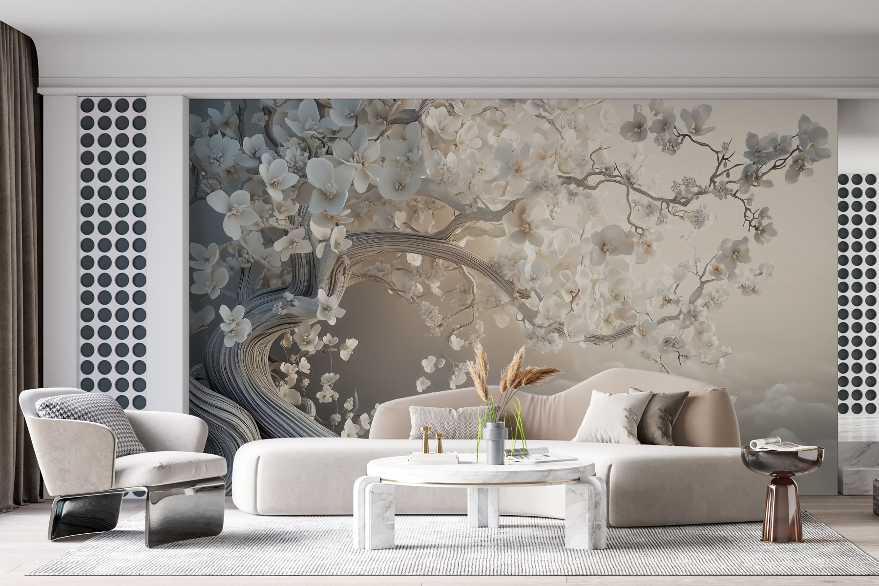 Imagine walking into a room and being greeted by a majestic tree, its elegant white flowers reaching out like gentle whispers. This “White Tree with White Flowers” mural isn’t just a decor piece; it’s like having nature’s calm right at your fingertips. Picture cozy evenings spent under this serene canopy, where every glance feels like a mini escape to a peaceful garden. It’s perfect for empty walls, transforming them into lush landscapes that invite relaxation and creativity. Plus, it might even inspire a bit of daydreaming—who wouldn’t want that? The soft colors blend seamlessly, making any space feel lighter and more inviting. Whether it’s a chic apartment or that quirky coffee shop down the street, this mural brings a touch of whimsy and a breath of fresh air. A beautiful touch that says, “Stay a while, relax, and let your thoughts drift.”