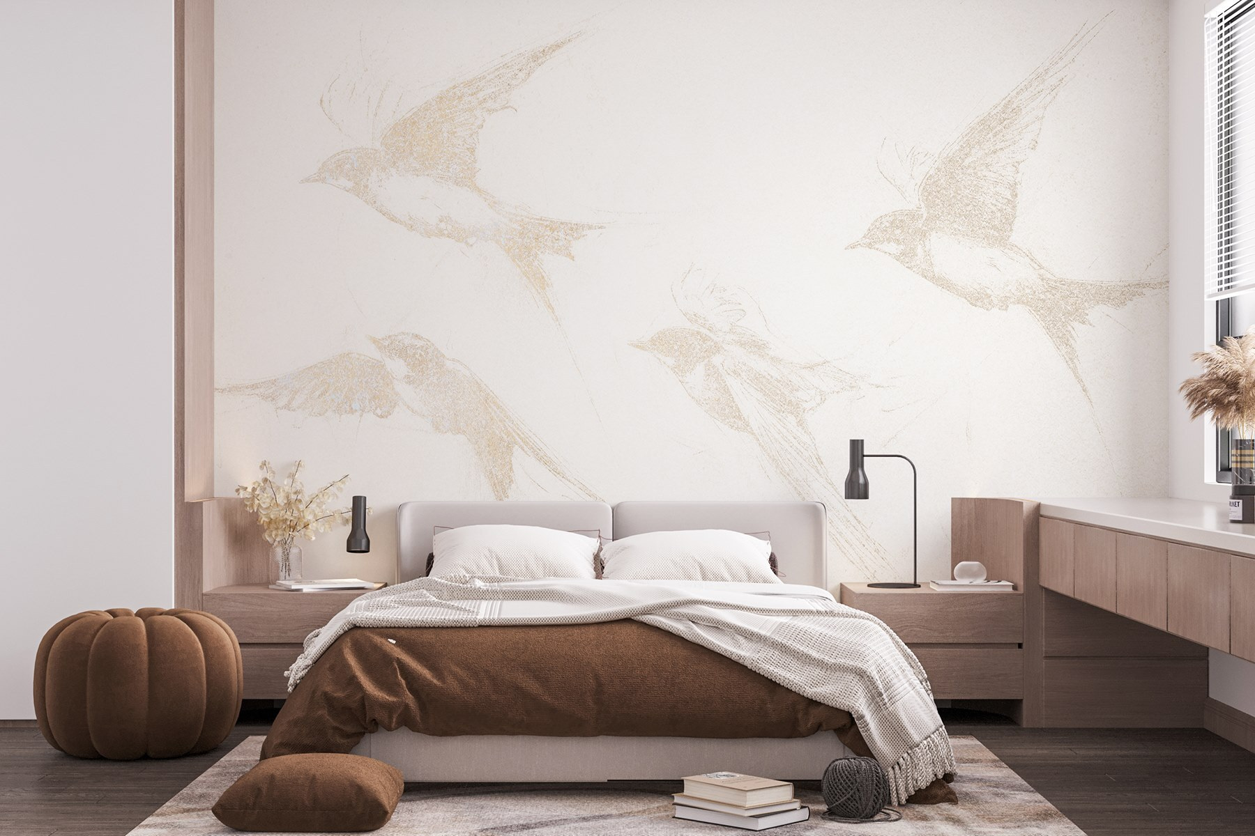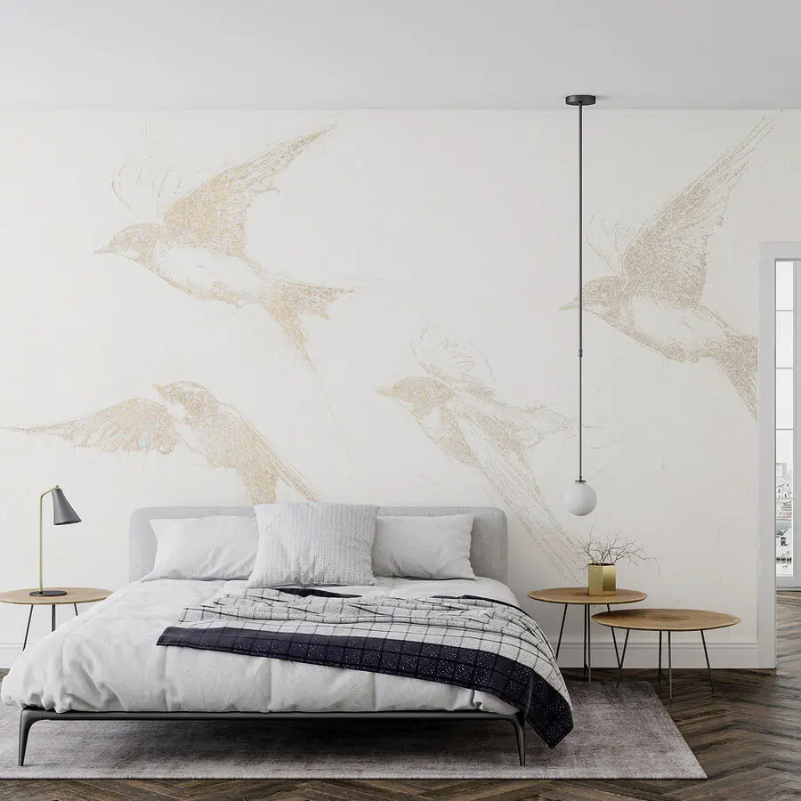 Welcome a touch of whimsy into any space with the “Group of Birds Flying” wall mural. Picture this: soft silhouettes of birds, soaring gracefully across a light background—perfect for making a room feel breezy and open. Whether it’s in a cozy reading nook or a cheerful kitchen, this mural brings a vibe that’s both tranquil and uplifting.