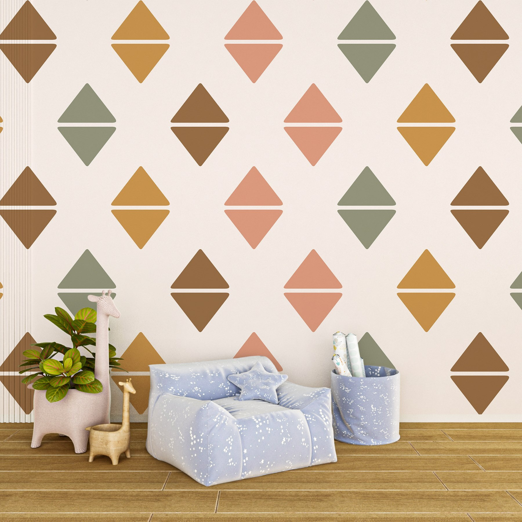 Transform any room with this playful wall mural featuring a dazzling pattern of colorful diamonds. It’s like bringing a piece of art straight from a quirky gallery into your home—no ticket required! Imagine walking into your space and feeling an instant lift, like a warm hug from a dear friend. The earthy tones and geometric shapes effortlessly blend to create a vibe that’s both soothing and energizing. Perfect for a cozy living room or a creative workspace, this mural sparks conversations and maybe even a smile or two. Who knew interior design could make such a splash? Go ahead—let your walls do the talking!