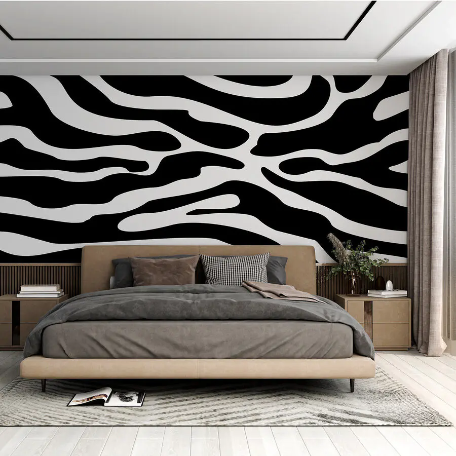 Transform any room into a stylish retreat with this eye-catching black and white mural. It’s got that fun, wavy pattern that feels almost hypnotic—like you could get lost in it while daydreaming about your next adventure. Imagine walking into a space where this mural sets the vibe, adding a touch of modern flair and an unexpected twist. It’s perfect for sparking conversations or just giving a nod to those who appreciate the unique. Plus, it pairs wonderfully with just about any color scheme. Throw in some plants or quirky art, and voilà—instant chic!