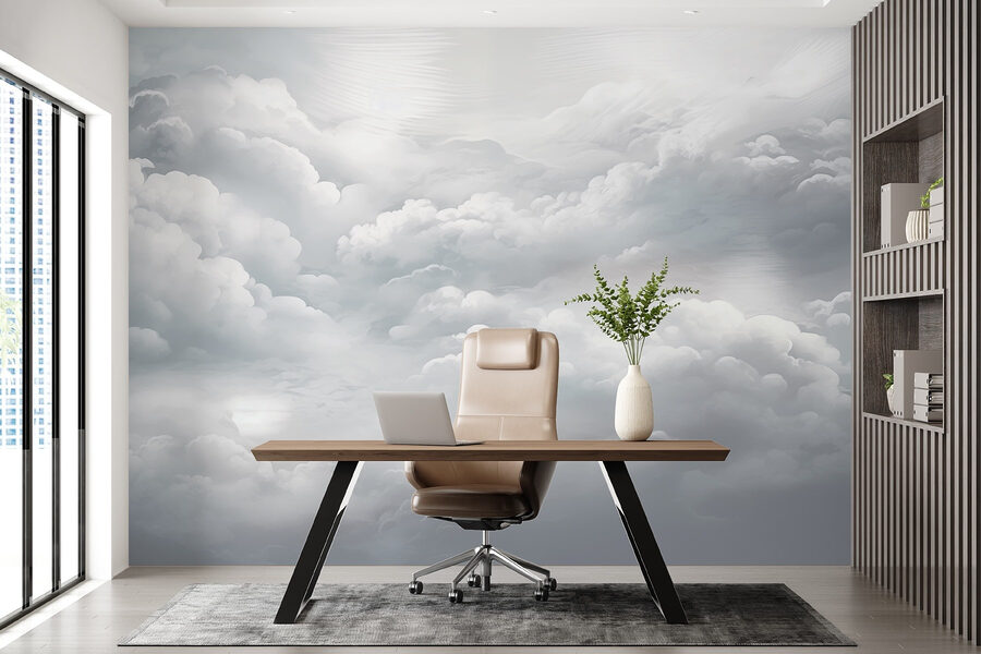 Transform your space with the dreamy “Cloudy Sky with Many Clouds” mural. Imagine stepping into a room that feels like a gentle embrace from fluffy clouds. This isn’t just wallpaper; it’s an invitation to drift away on a lazy afternoon, maybe while sipping tea or binge-watching your favorite series. The soothing shades of gray make it versatile—perfect for a cozy living room or a serene bedroom retreat. Plus, it sparks the imagination—who wouldn’t want to daydream among the clouds? It’s like having a slice of the sky right at home. Just watch as your walls turn into a canvas of calm.