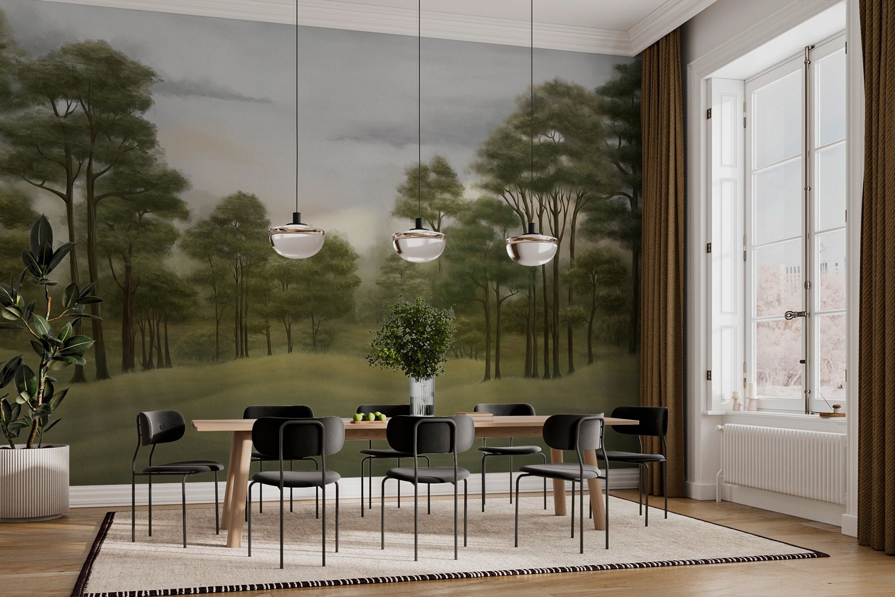 Transform your space into a tranquil escape with this gorgeous wall mural, “Landscape with Trees and Grass.” Imagine stepping into a serene forest every time you walk into the room—lush greenery and gentle hills bring an open, airy vibe that’s hard to resist. It’s like having a mini-vacation on your wall, perfect for daydreaming or just unwinding. Plus, with its muted color palette, it matches just about any decor style—modern, rustic, you name it. Add some plush cushions for extra comfort and voilà! You’ve created a cozy nook that invites relaxation. Who wouldn’t want that? Just be ready for a few compliments from visitors. They may want to take a closer look, wondering if they can actually step into the mural!