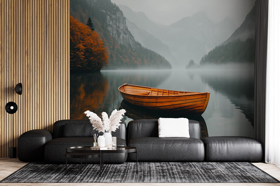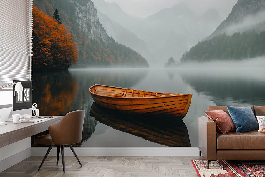Transform a plain wall into a serene escape with the “Boat on a Lake” mural. Picture this: a peaceful wooden boat floating on a tranquil lake, surrounded by misty mountains and autumn-hued trees. It’s like a cozy hug for your space. Imagine sipping tea while gazing at this mural, the gentle colors soothing your mind. Friends might even stop mid-sentence, captivated by the beauty! Plus, it pulls together a room effortlessly. Whether you’re dreaming of adventure or just craving a calm vibe, this mural is the perfect touch. Who knows, it might even spark a desire to take an actual boat ride!