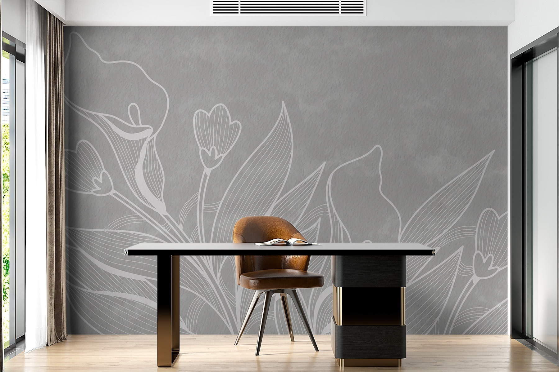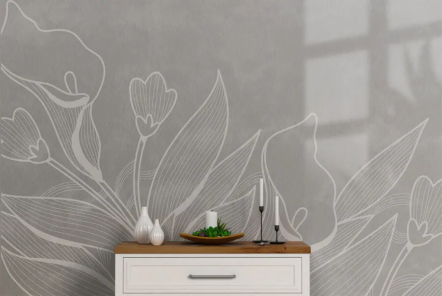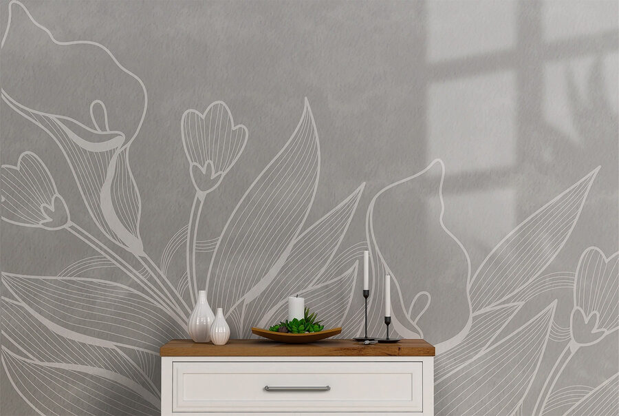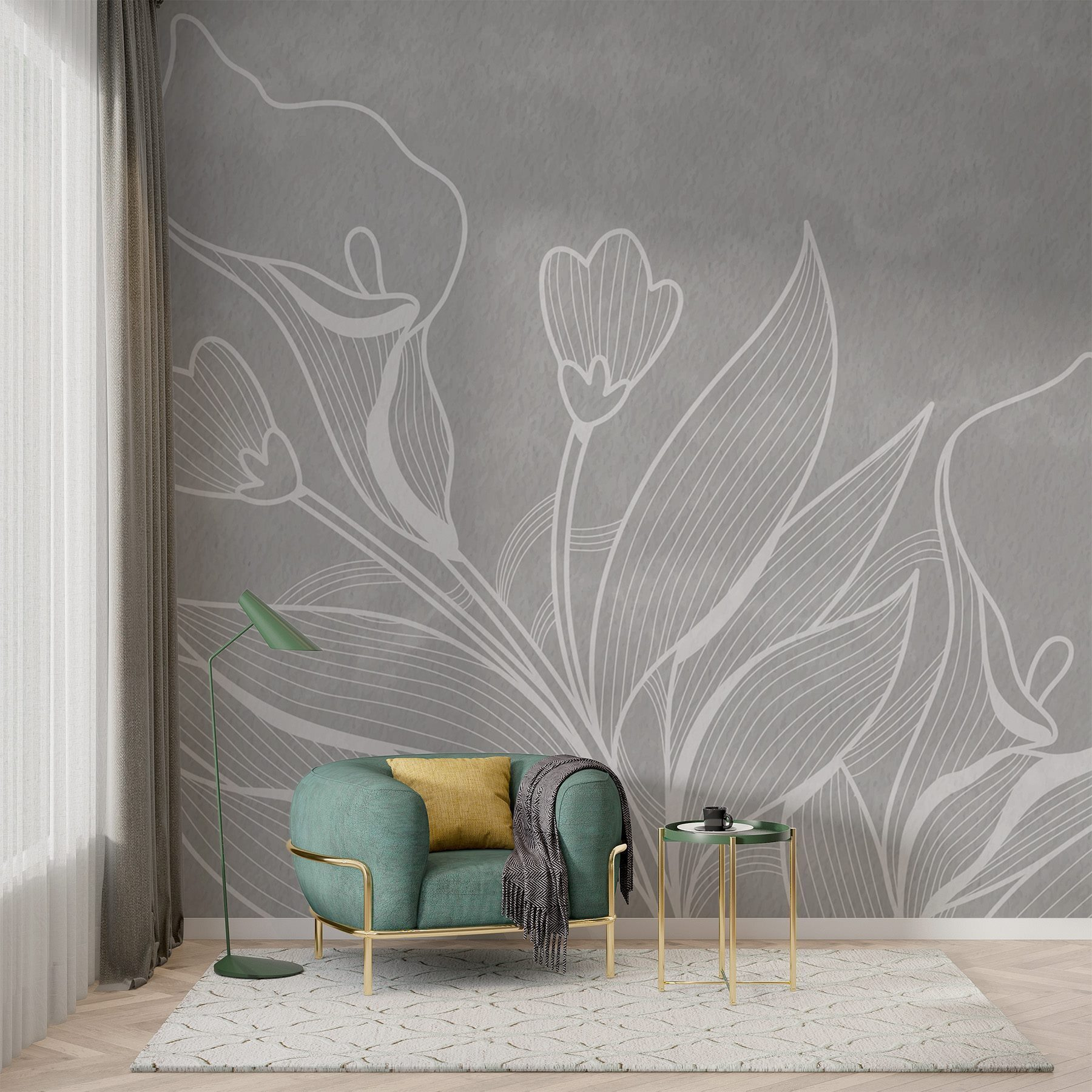 Transform your space with this stunning wall mural featuring delicate white line drawings of flowers. It’s like having a fancy garden right on your wall, without the need to water anything! The soft gray backdrop gives it a calming vibe, perfect for creating a serene escape at home. Imagine sipping coffee while soaking in the beauty of nature’s artwork—such a peaceful moment. This design fits perfectly in any room, adding a touch of elegance and a splash of personality. It’s not just decor; it’s a little piece of joy every day. Who wouldn’t smile at that?