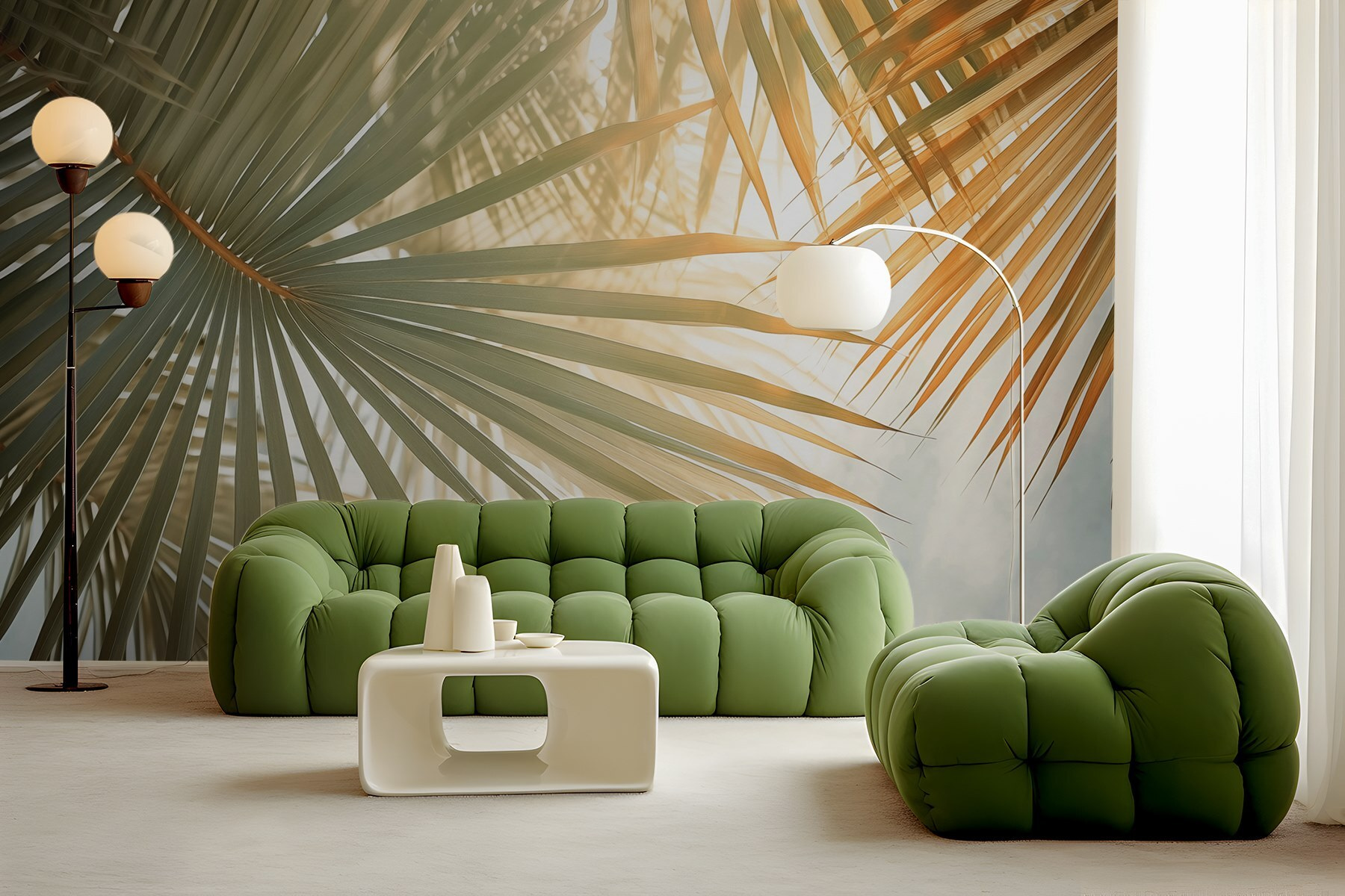 Transform any space into a tranquil oasis with this mural featuring serene palm leaves bathed in soft light. Imagine walking into a room that feels like a gentle breeze on a warm day—so inviting! The delicate blend of greens and golden tones adds a touch of nature’s beauty, perfect for creating that laid-back vibe. Whether it’s your living room or a cozy corner, this mural whispers relaxation. Picture curling up with a book or sipping tea while feeling the tranquility wash over you. It’s like bringing a slice of the tropics indoors. Perfect for nature lovers or anyone dreaming of a peaceful retreat!