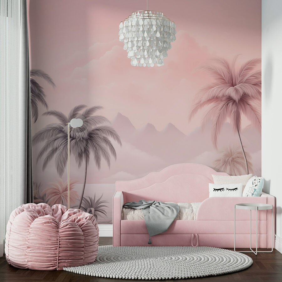Transform your space into a dreamy getaway with this stunning wall mural featuring serene palm trees and mountains. Imagine walking into a room that instantly whispers vacation vibes, as gentle pastels create a calming atmosphere. It’s like having a slice of paradise right at home, minus the sand in your shoes! Perfect for a cozy reading nook or a stylish living room, this mural invites daydreams of sunny beaches and lazy afternoons. Plus, who wouldn’t want to feel like they’re lounging in the tropics every day? A fun conversation starter for sure, and hey, no plane ticket required!