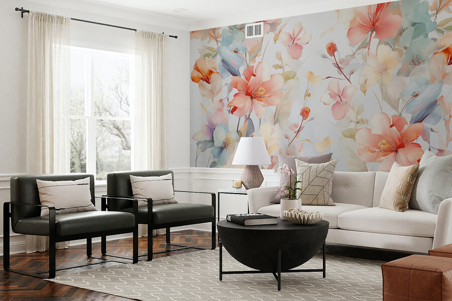 Transform any room into a serene garden with this stunning wall mural featuring colorful flowers on a soft white background. Imagine walking into your space and feeling a gentle breeze of floral bliss wrapping around you. The playful mix of vibrant blossoms creates a cheerful atmosphere, perfect for brightening up a dull corner or making a statement in a living room. It’s like having your own blooming oasis, minus the watering can. Friends will wonder if you’ve got a secret green thumb! Let this mural bring a sense of joy and nature indoors—because who doesn’t love a little floral flair?