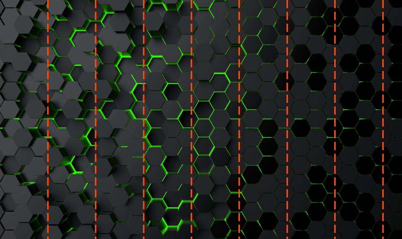 Wall murals Black hexagons with green light