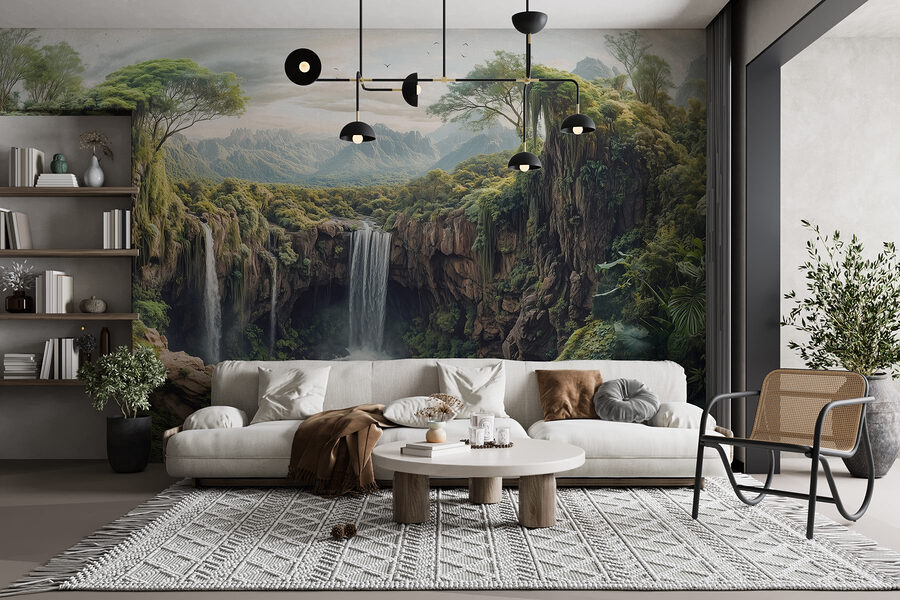 Imagine walking into a space that instantly feels like a serene forest escape—thanks to the “Wall Murals Waterfall in a Forest.” This stunning mural brings nature indoors, featuring a breathtaking waterfall cascading down lush cliff sides, surrounded by vibrant greenery. Perfect for those days when you can’t quite make it outdoors. It’s like a mini-vacation for your walls!