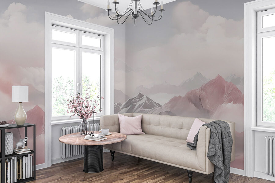 Transform any wall into a breathtaking escape with this stunning mountain range mural. Imagine waking up and being greeted by soft pink peaks and fluffy clouds that seem to whisper secrets of faraway lands. It’s like bringing a slice of nature right into your living space—perfect for a calming vibe! Whether it’s in the living room or a cozy reading nook, this mural sets the mood for relaxation. It’s almost poetic—the way the colors blend and shift, like a serene sunset just waiting for you to pause and enjoy. So, grab a comfy chair, settle in, and let this artwork take you to a peaceful retreat, all from the comfort of home. Who knew wall decor could be this dreamy?