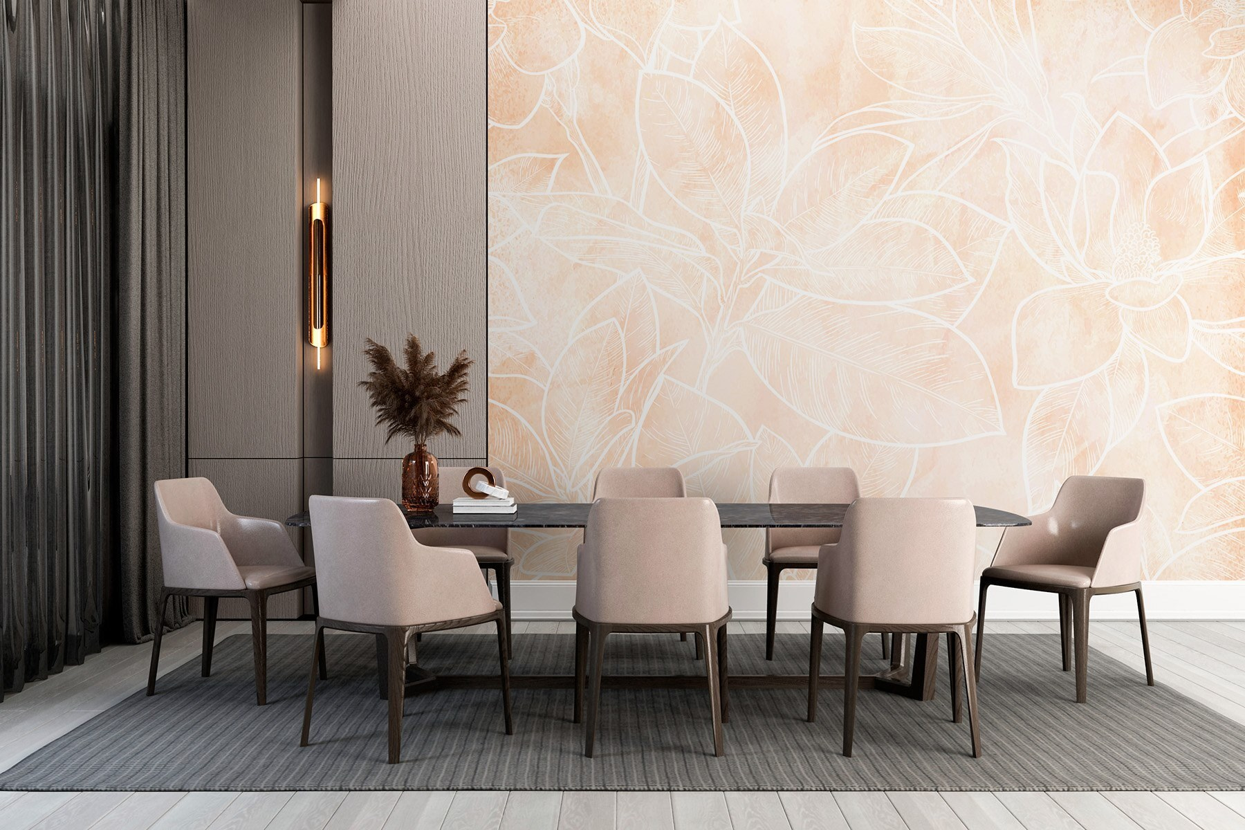 Transform your space with the “Wall Murals White Line Drawing of Flowers.” This lovely mural gently whispers elegance with its soft blush background and delicate white floral outlines. Picture this: a cozy corner in your living room now bursting with charm, inviting that calming vibe. It’s like bringing a little garden indoors without the pollen and bugs! Friends will compliment it, and you might even catch yourself daydreaming while sipping tea nearby. Perfect for embracing nature’s beauty—no green thumb needed! Perfectly versatile, it fits any style, be it modern chic or rustic charm. Go ahead, let those walls bloom!