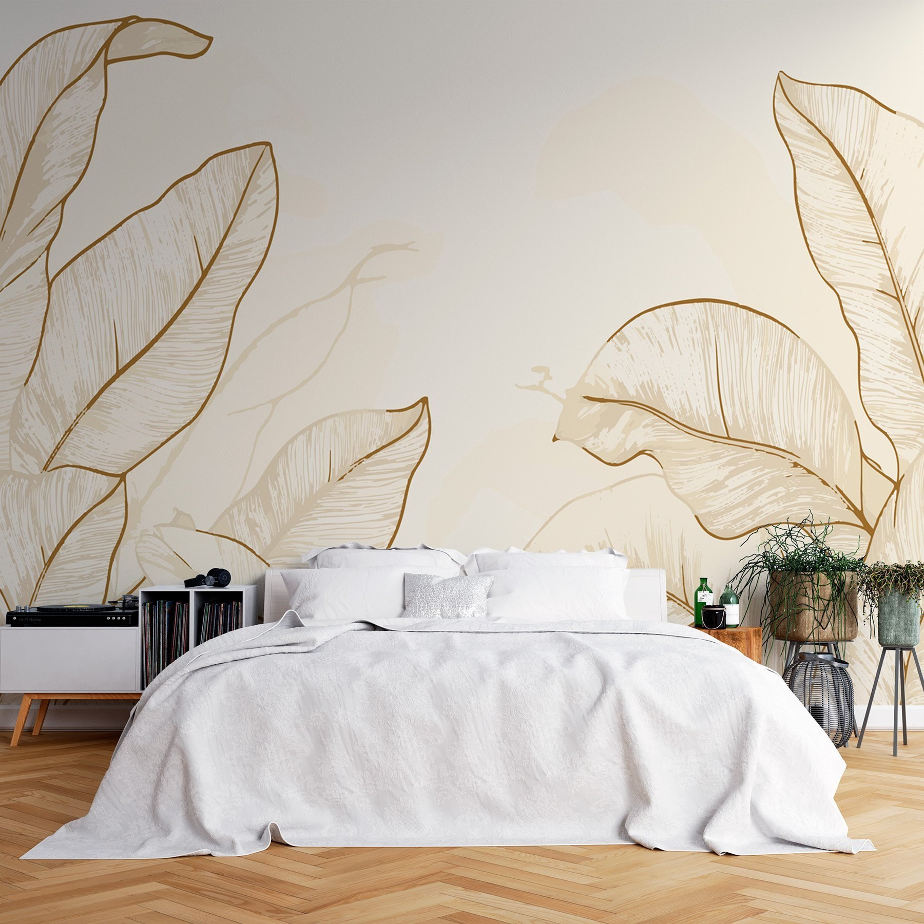 Transform any wall into a vibrant canvas with these elegant botanical illustrations of leaves. Imagine stepping into a sunlit forest or a tropical garden just by walking into the room. The delicate lines of the leaves create a calming vibe, perfect for a cozy reading nook or a lively dining area. Friends might stop mid-conversation, eyes wandering to the mural, and say, “Wow, where’d you find that?” It’s an instant conversation starter. The subtle colors blend beautifully, bringing nature indoors—you might even start dreaming of beach vacations! Give your space a fresh breath of life with this stunning mural and let it spark joy daily.