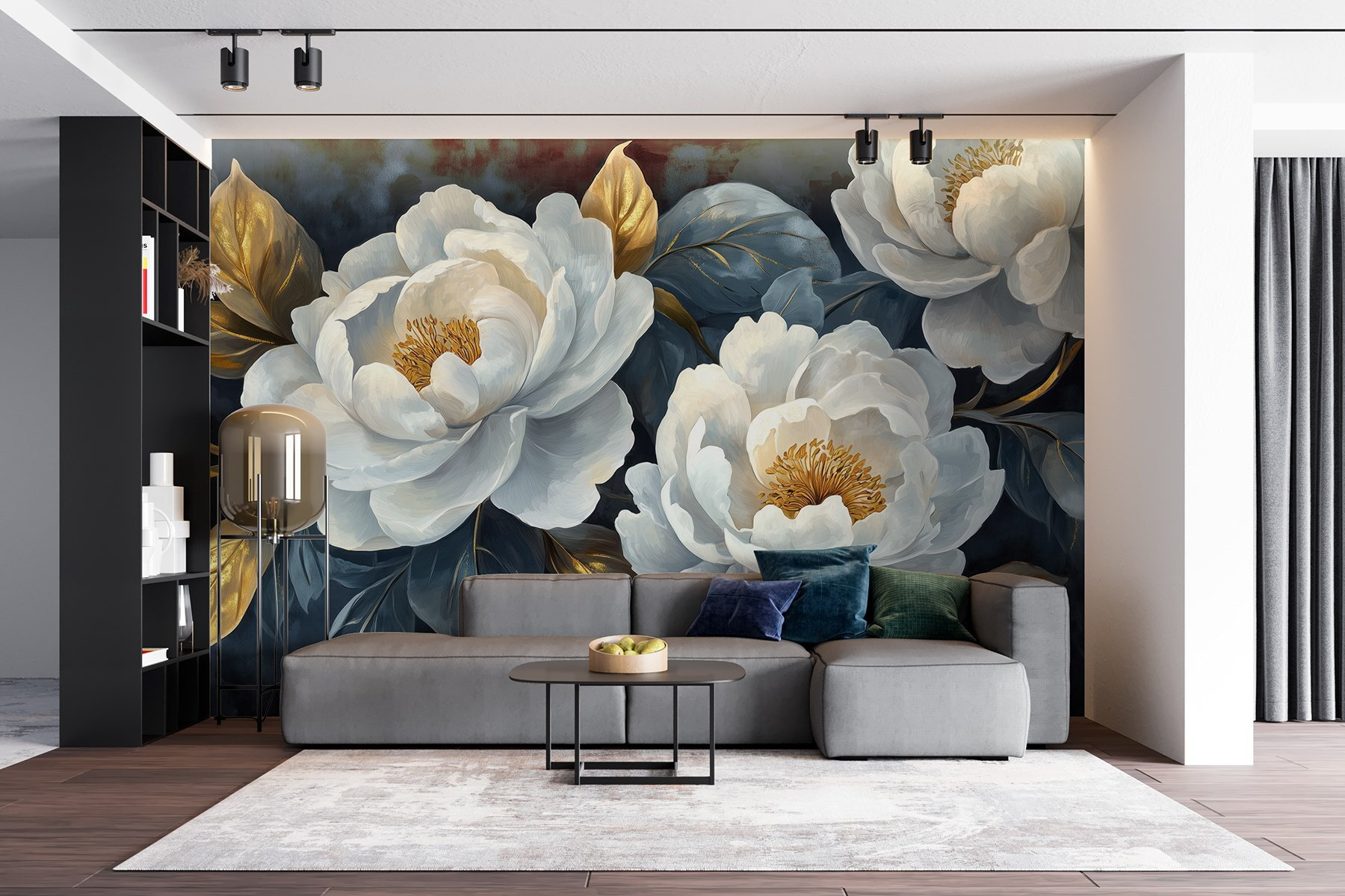 Transform your space with this stunning mural, “Delicate Blooms on a Dark Backdrop.” Imagine walking into a room where wild peonies burst forth like unexpected guests at a tea party, all dressed up and ready to impress. The dark background makes those gorgeous white flowers pop, giving your wall a touch of elegance and drama. It’s like having a garden that never wilts. Each petal feels almost like it’s inviting you to stop and appreciate the beauty in the moment. Perfect for a cozy reading nook or that empty wall you’ve been ignoring. Anyone who sees it won’t just glance—they’ll stop, maybe sigh, and think, “Ah, now that’s livin’!”