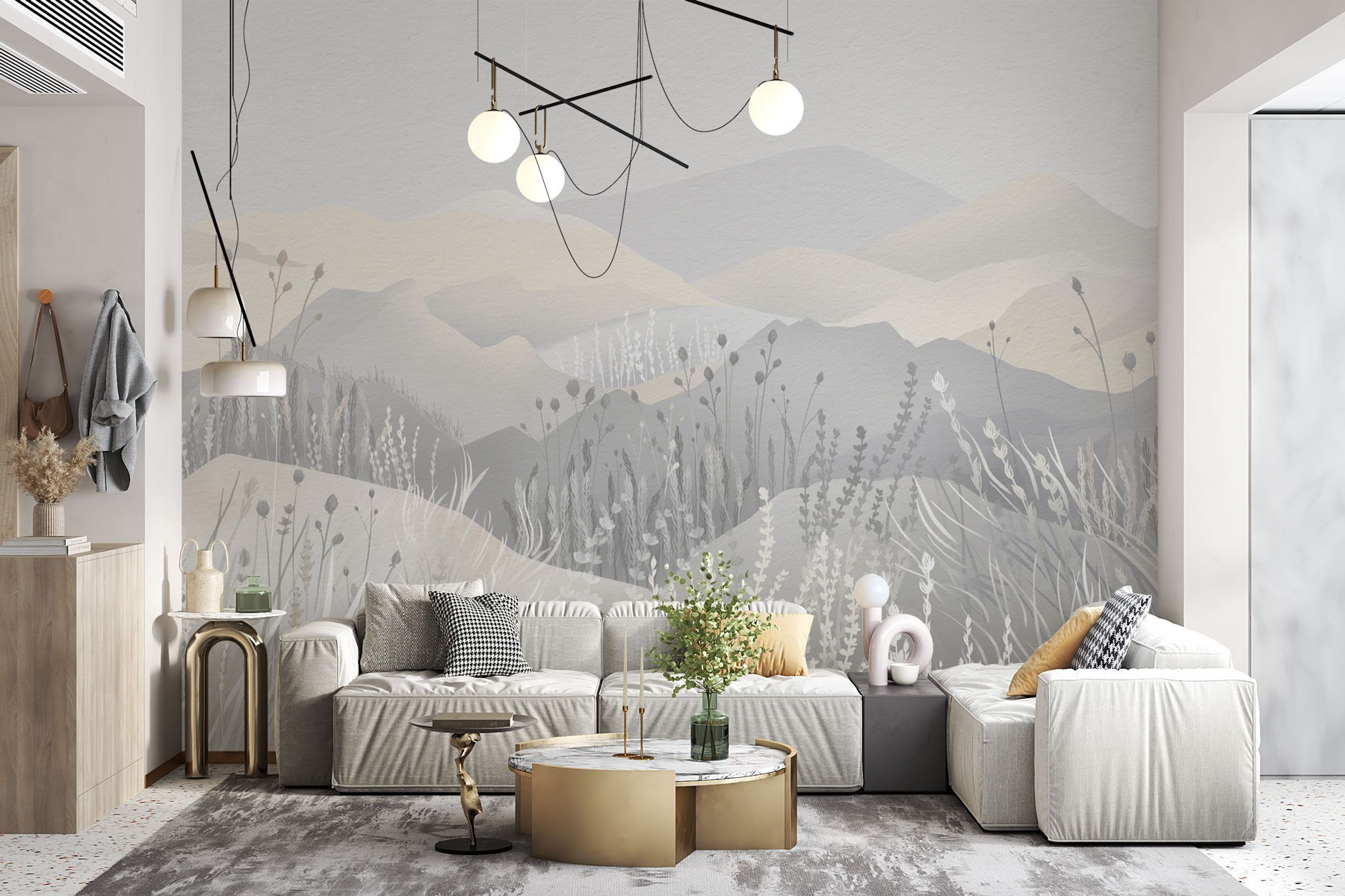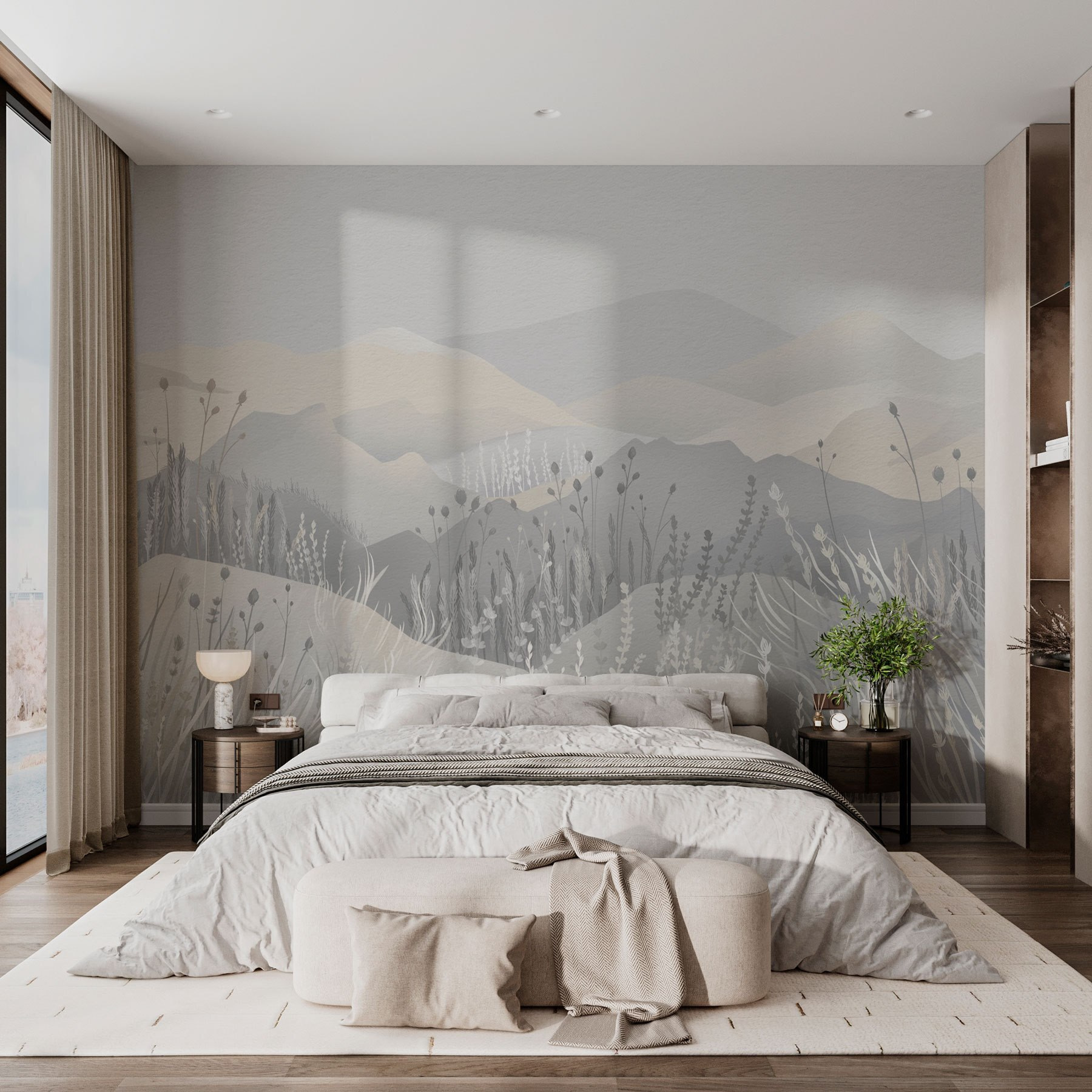 Transform any space with this enchanting wall mural, painting a serene landscape of soft mountains and gentle grasses. It’s like stepping into a dreamy daydream where nature whispers peace. Imagine curling up with a good book or sipping tea while gazing at this soothing scene. The muted tones create a calm vibe, perfect for unwinding after a long day. Plus, it’s a reminder that the great outdoors isn’t too far away—even if it’s just outside your window. Why not bring a bit of that tranquility inside? Home should feel like a hug, and this mural does just that.