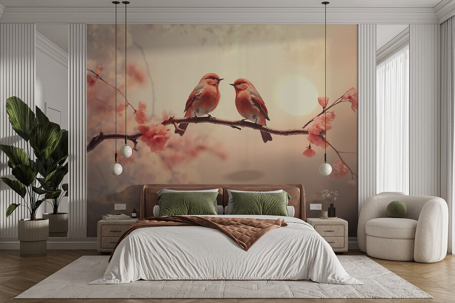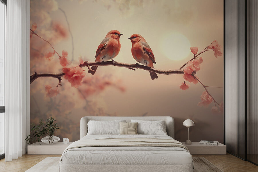 Imagine stepping into a room that feels like a gentle spring morning—air filled with the scent of blooming flowers, and what do you find? A stunning mural, “Two Birds on a Branch,” perched right above your favorite reading nook. These charming birds seem to be caught in a sweet moment, sharing whispers and secrets. With soft hues and delicate blossoms, it brings a cozy warmth, perfect for those lazy afternoons with a cup of tea. Picture visitors admiring it, feeling like they’ve just wandered into a serene garden. It’s like nature’s little gift, turning any space into a peaceful retreat, where every glance reminds you of simpler joys. Go on, let these feathered friends brighten up your walls!