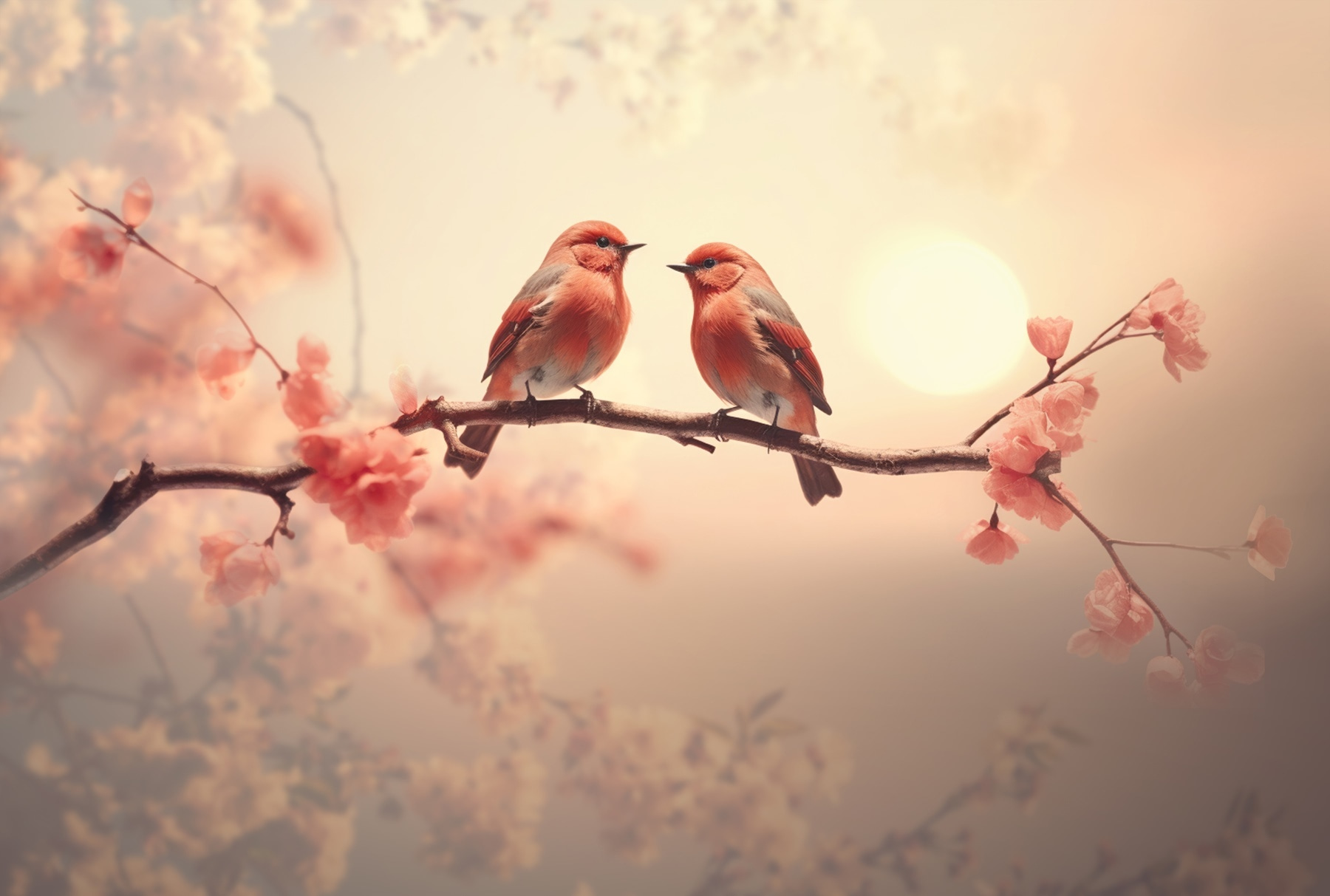 Imagine stepping into a room that feels like a gentle spring morning—air filled with the scent of blooming flowers, and what do you find? A stunning mural, “Two Birds on a Branch,” perched right above your favorite reading nook. These charming birds seem to be caught in a sweet moment, sharing whispers and secrets. With soft hues and delicate blossoms, it brings a cozy warmth, perfect for those lazy afternoons with a cup of tea. Picture visitors admiring it, feeling like they’ve just wandered into a serene garden. It’s like nature’s little gift, turning any space into a peaceful retreat, where every glance reminds you of simpler joys. Go on, let these feathered friends brighten up your walls!