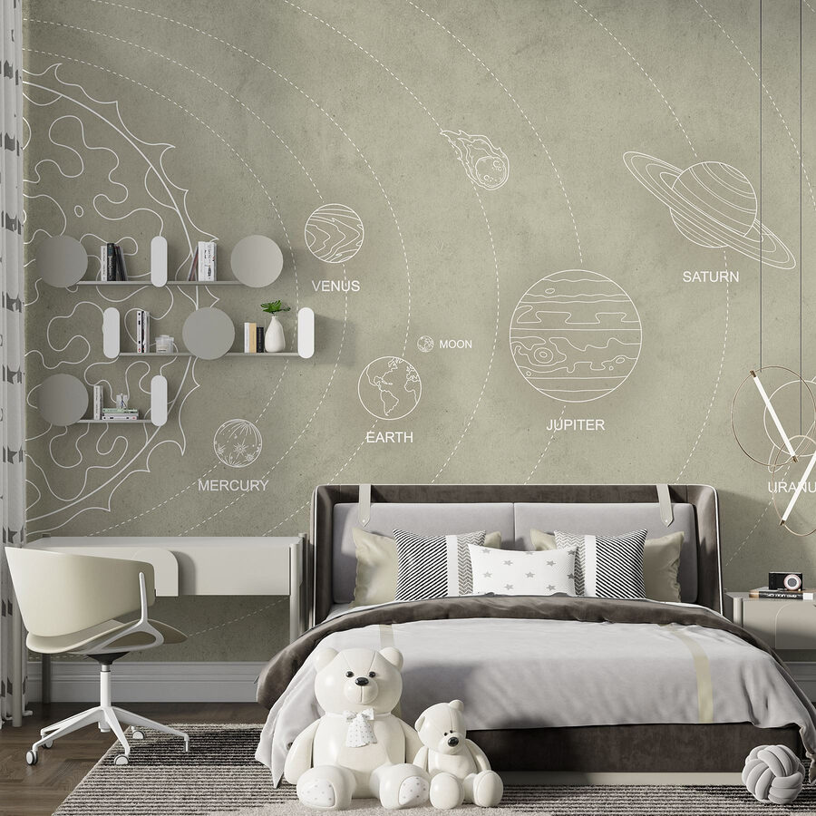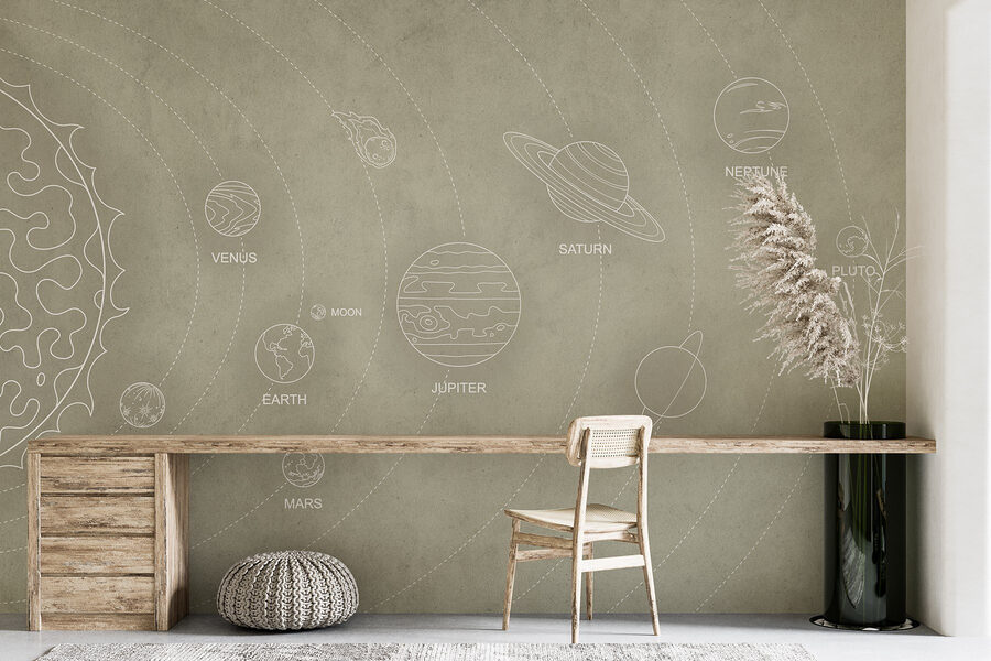 Bring the cosmos right into your living space with this stunning wall mural featuring a whimsical diagram of the planets. It’s like having a mini universe on your wall! Imagine sipping coffee while pointing out Jupiter’s swirling storms or Venus’s mysterious glow. The clean lines and subtle colors create a serene vibe, perfect for a cozy reading nook or a playful kid’s room. It sparks conversations too—who doesn’t love a good chat about Pluto? This mural is sure to take your decor to a whole new stratosphere, letting your imagination soar among the stars!