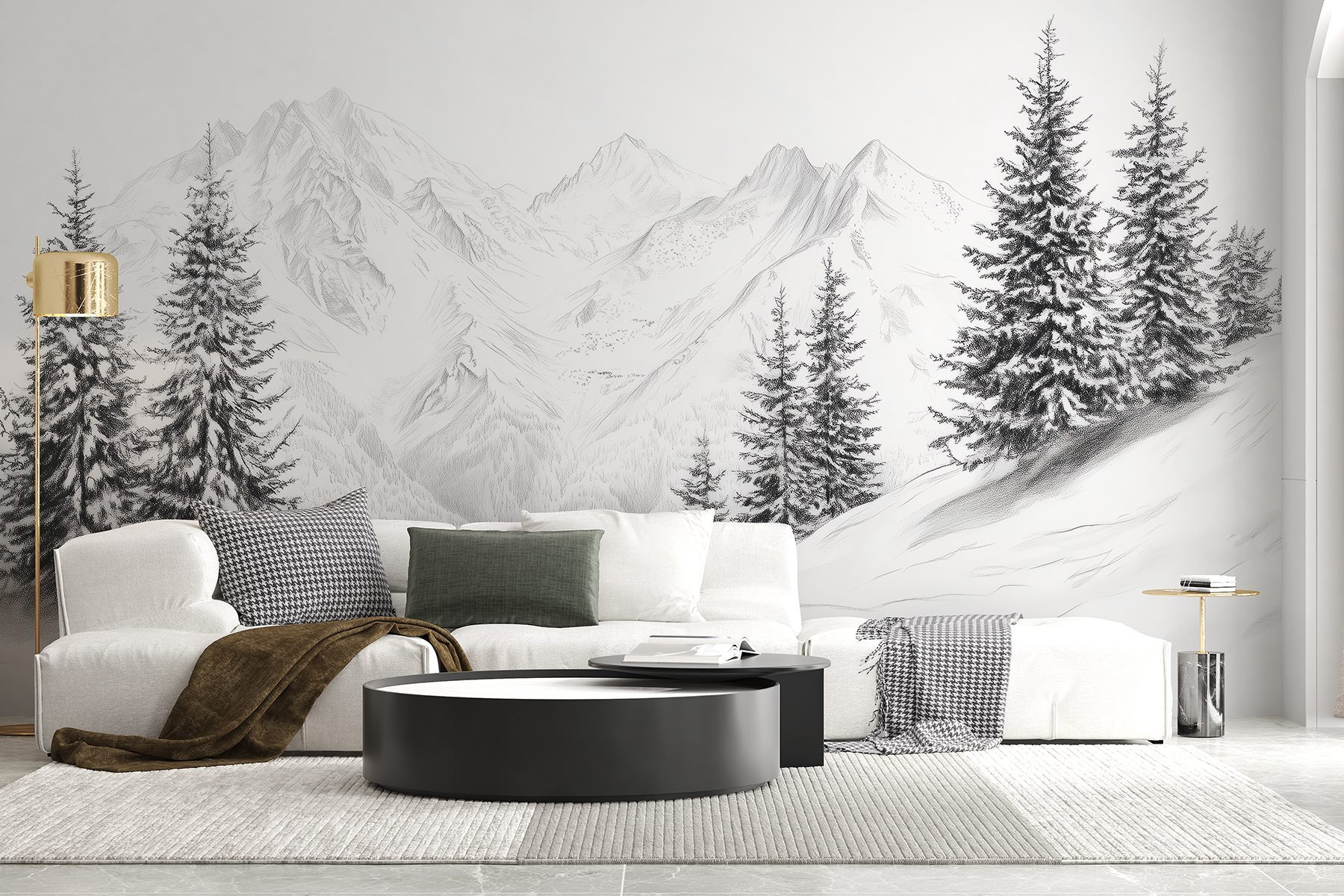 Transform your space with this stunning wall mural, showcasing a serene snowy mountain range that instantly brings a breath of fresh air indoors. Imagine cozying up with a warm drink, feeling like you’re nestled in a remote cabin while being just a few steps from your living room. The intricacies of the design—those majestic peaks kissed by snow—spark a sense of tranquility. Perfect for nature lovers or anyone looking to inspire a little wanderlust, this mural not only beautifies a wall but also invites peaceful daydreams. It’s like having a mini getaway right at home!