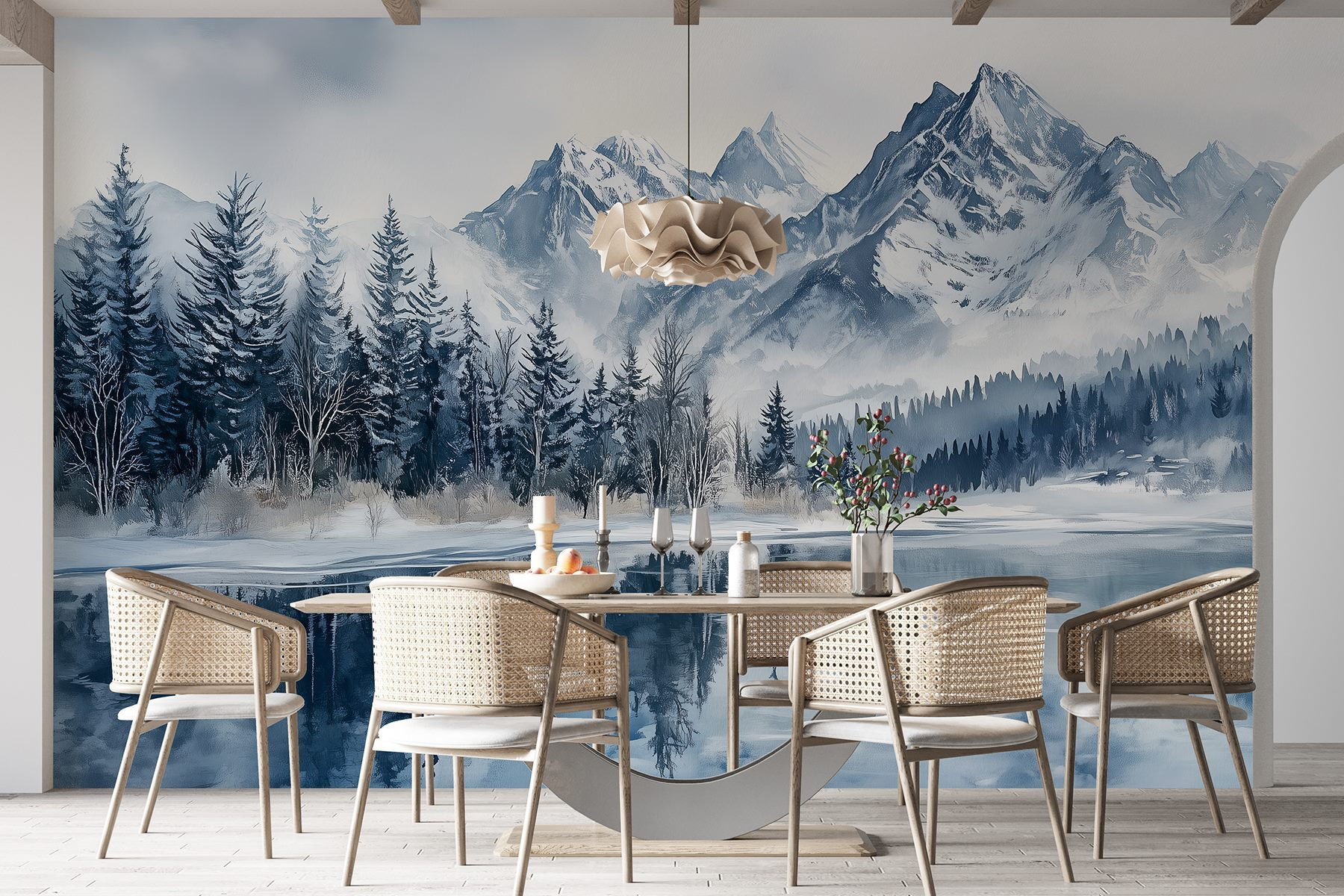 Transform your space into a serene mountain retreat with this stunning mural. “Wall Murals Lake with Snow Covered Mountains and Trees” brings the tranquility of nature right into your home. Imagine waking up to breathtaking views of majestic peaks and a glistening lake—the kind of scenery that makes you feel like you’re on a mini vacation, even if you’re just sipping coffee in your living room. This mural serves a gentle reminder of nature’s beauty, sparking daydreams of weekend getaways and cozy fireside chats. It’s perfect for adding a peaceful vibe to any room. So, go ahead, let the mountains whisper sweet nothings to your walls!