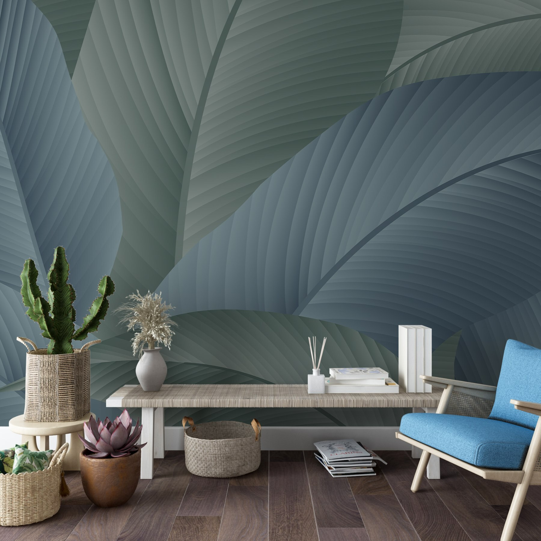 Transform your space into a tranquil oasis with this stunning wall mural featuring textured leaves in soothing colors. Just picture it—a cozy corner or maybe that wall that’s been begging for a little love. This piece effortlessly blends greens and blues, bringing a fresh vibe that almost makes you feel like you’ve stepped into a serene tropical retreat. Friends might say, “Wow, you’re so into nature,” and you can just sip your coffee, nodding in agreement. It’s perfect for sparking joy, adding a bit of calm to your day, or simply making your walls pop. Perfect for any room, it’s a simple way to elevate your decor game without the fuss. Who knew leaves could be so captivating?