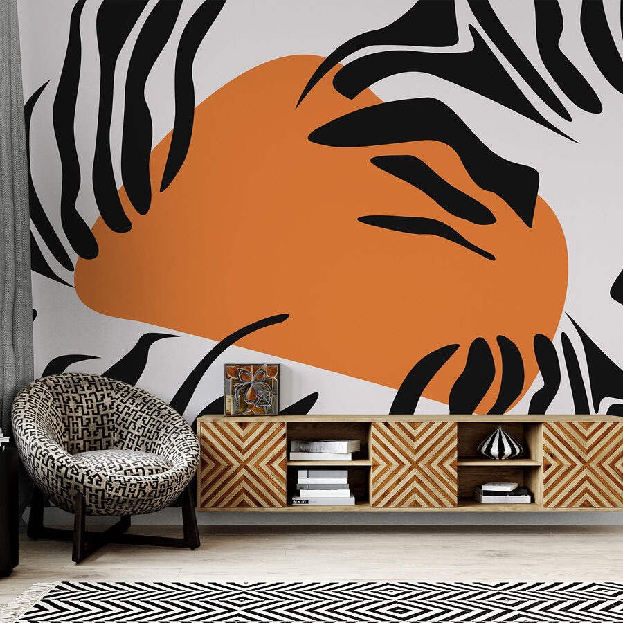 Transform any space into a lively oasis with this vibrant wall mural featuring dynamic patterns in bold colors. Imagine stepping into your room and being greeted by a dance of black and white stripes playfully surrounding a pop of orange. It’s like your walls are inviting you to join a funky party every day. Perfect for those who crave a splash of unique flair, this design makes even the blandest spaces come alive. Friends will definitely raise an eyebrow and ask where the magic came from. Add some character to your home and watch how it effortlessly becomes the centerpiece of every conversation. Who knew wall decor could stir such joy?